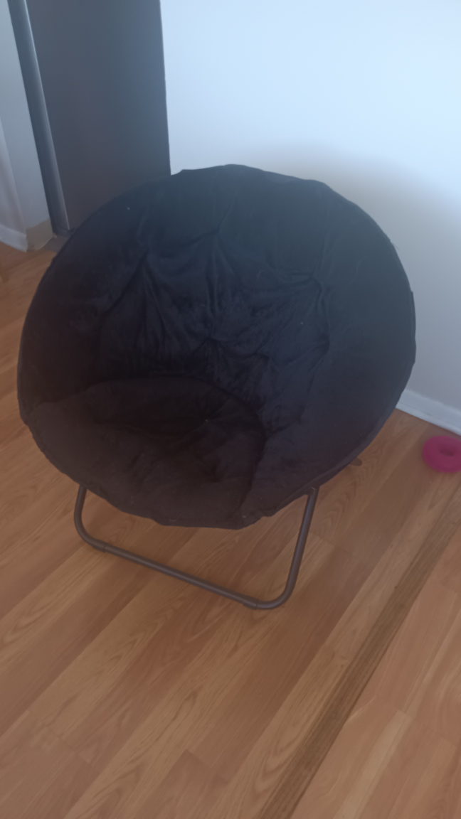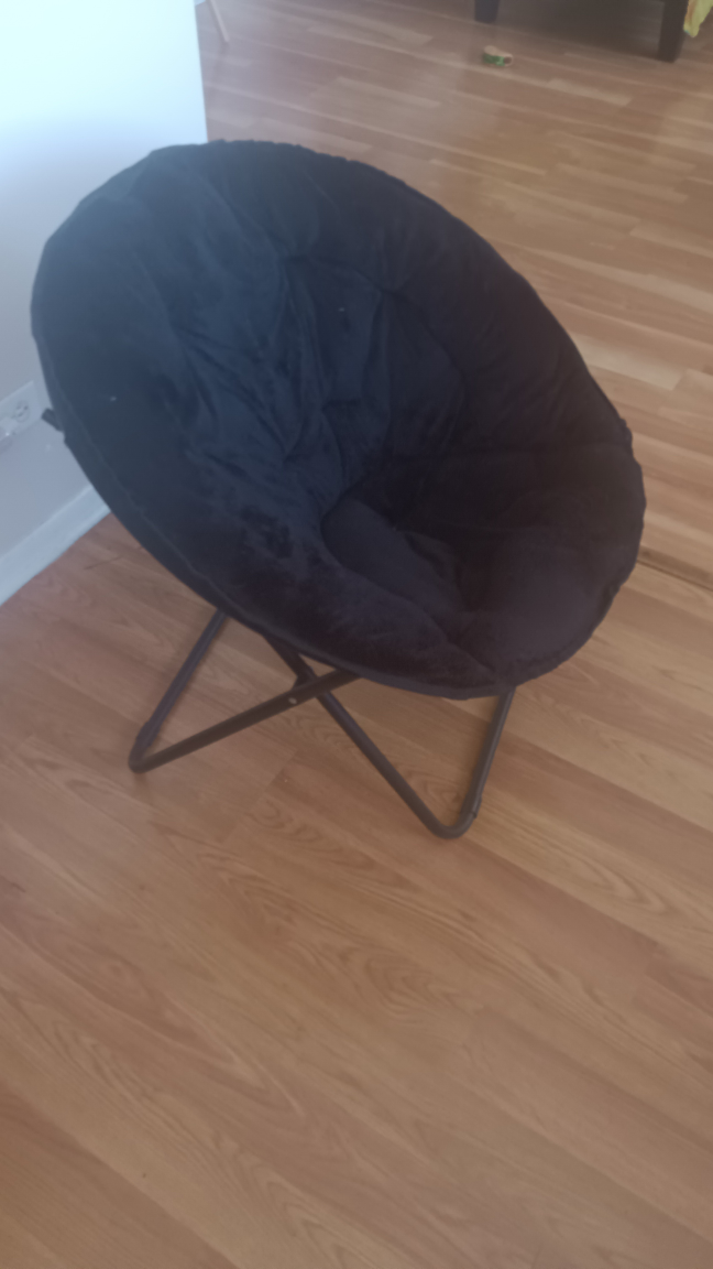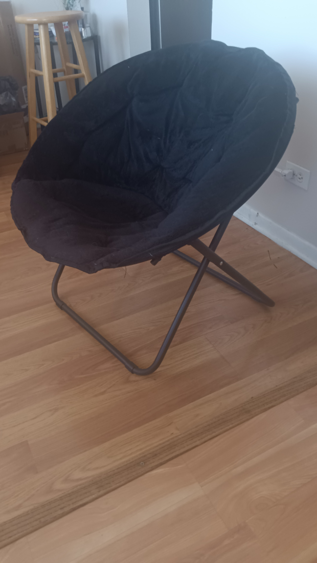 Selling a comfy black folding moon chair! It's in great shape and perfect for adding a cozy spot to any room. This chair is easy to fold up and store when not in use.