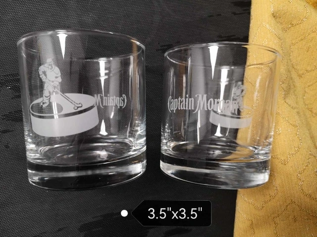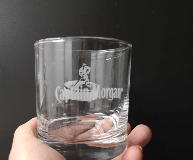 These are two Whisky glasses featuring the logos of Whisigo hockey and Captain Morgan, respectively. They're in good shape and would make a great addition to any home bar. * Approximately 3.5" x 3.5" near Chinook station area