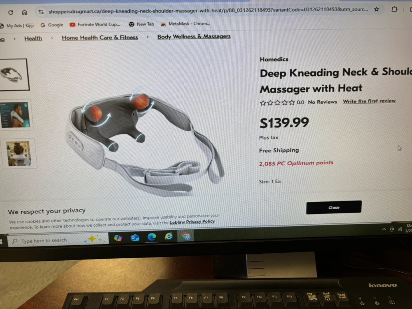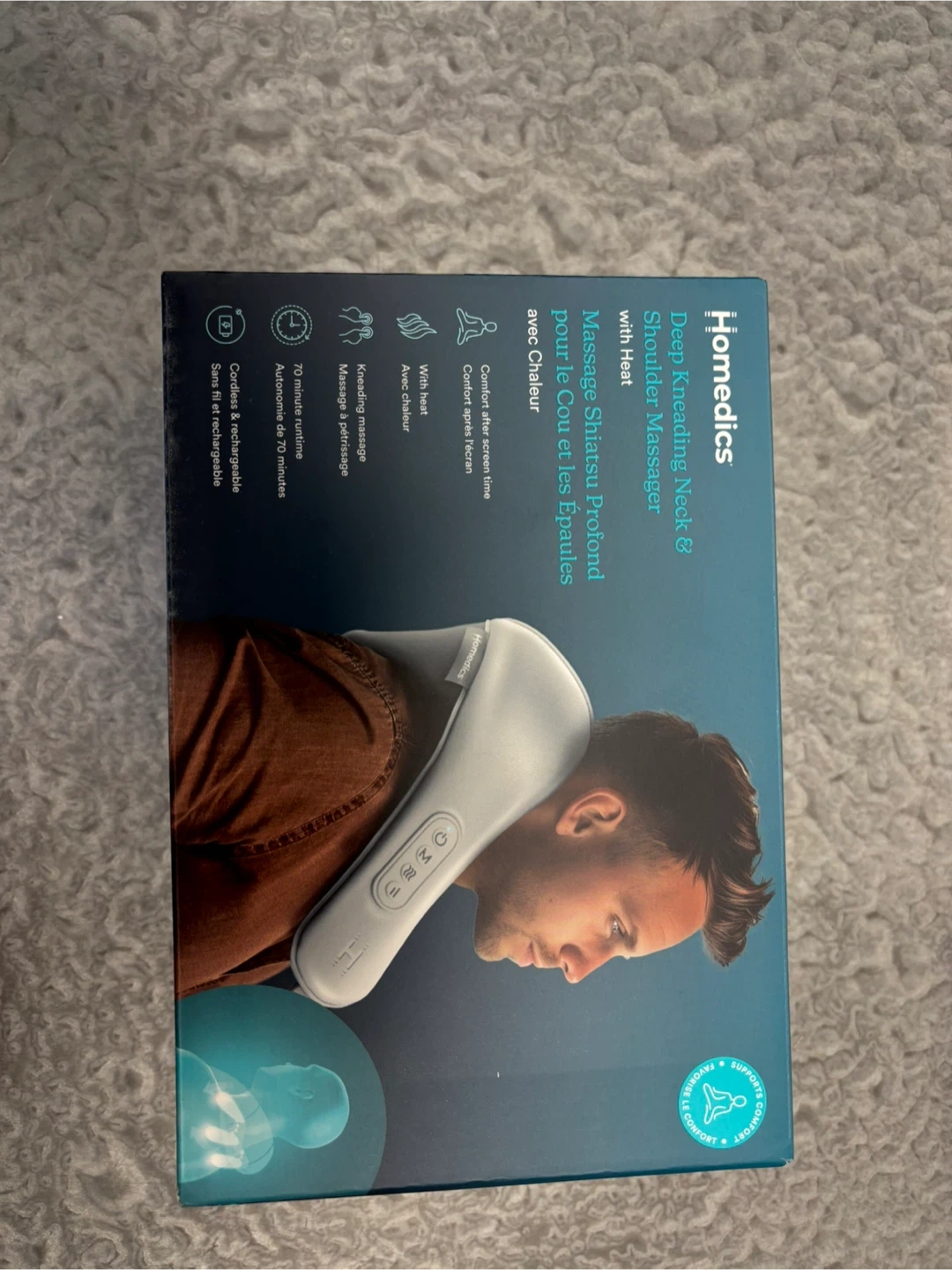 Deep kneading shiatsu massage for your neck and shoulders with soothing heat! It features 2 intensity levels, a hands-free adjustable strap, and is cordless and rechargeable. This massager has a 20-minute auto-off timer for safety. Brand new. Never used.