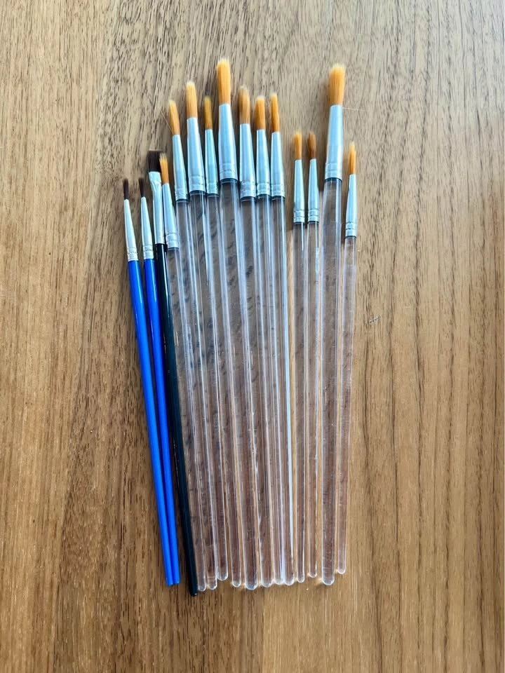 Includes a 24-color acrylic paint set (most barely used), multiple paint brushes in various sizes, and a watercolor activity drawing pad with 7 untouched sheets. Pick up only at 2108 Gilmore Ave, Burnaby.
