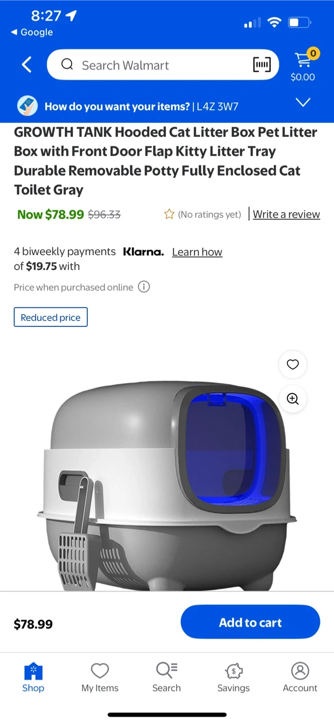 Selling a GROWTH TANK hooded cat litter box in grey. It features a front door flap and a durable removable potty. Comes with a kitty litter tray and a scoop for easy cleaning!