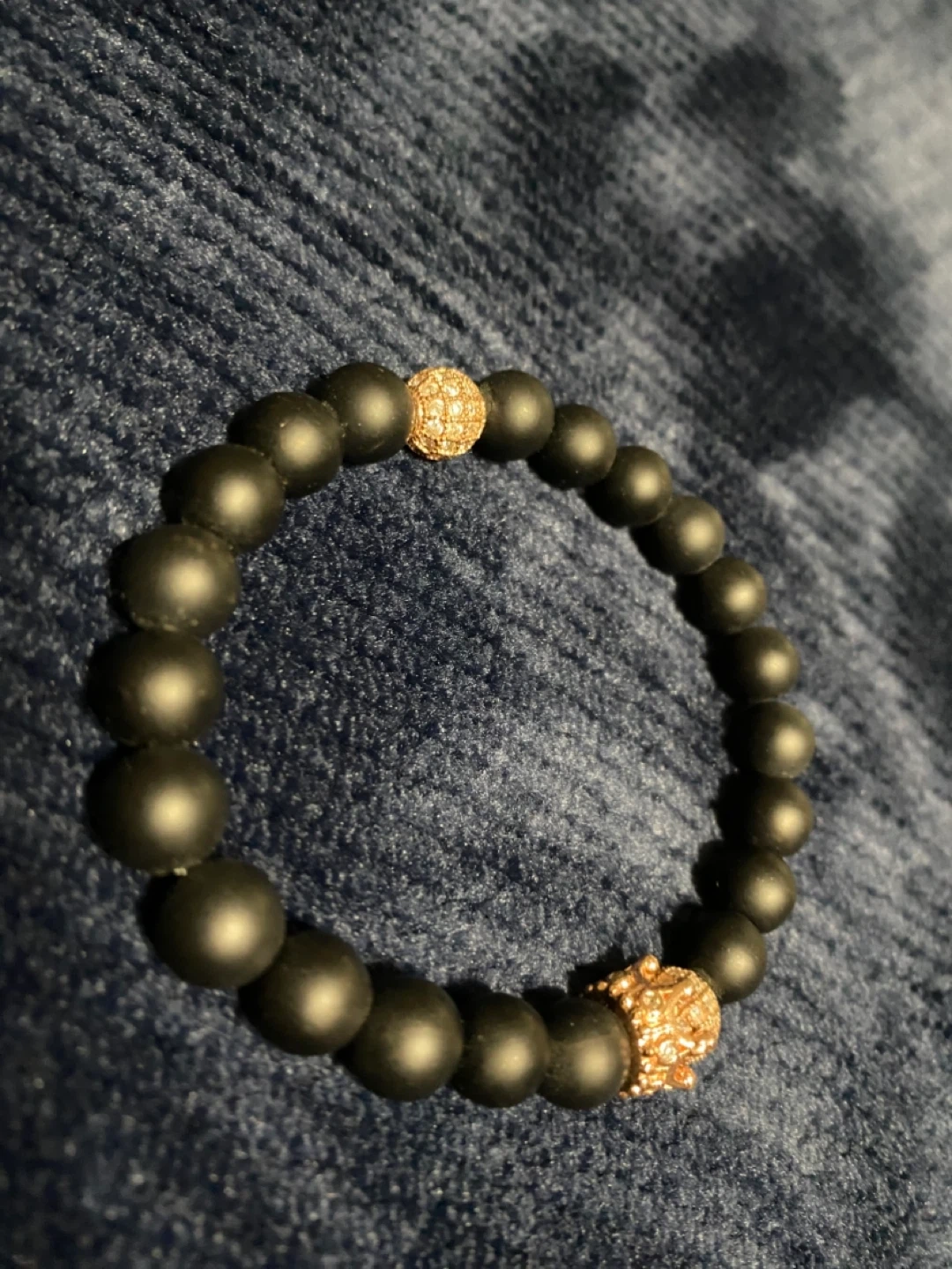 Selling a black beaded bracelet featuring gold accents. It's in great condition and would make a lovely addition to any outfit! Be sure to check my other listings!