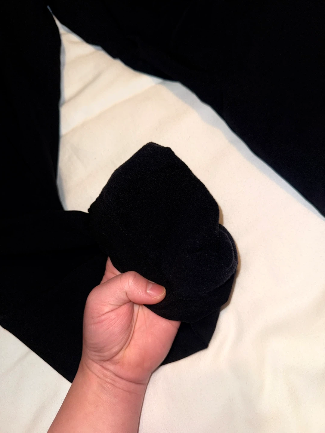 Uniqlo Heattech pants in black. The shell is 70% polyester, 10% acrylic, 10% rayon, and 10% spandex. These pants are great for keeping warm during colder weather!