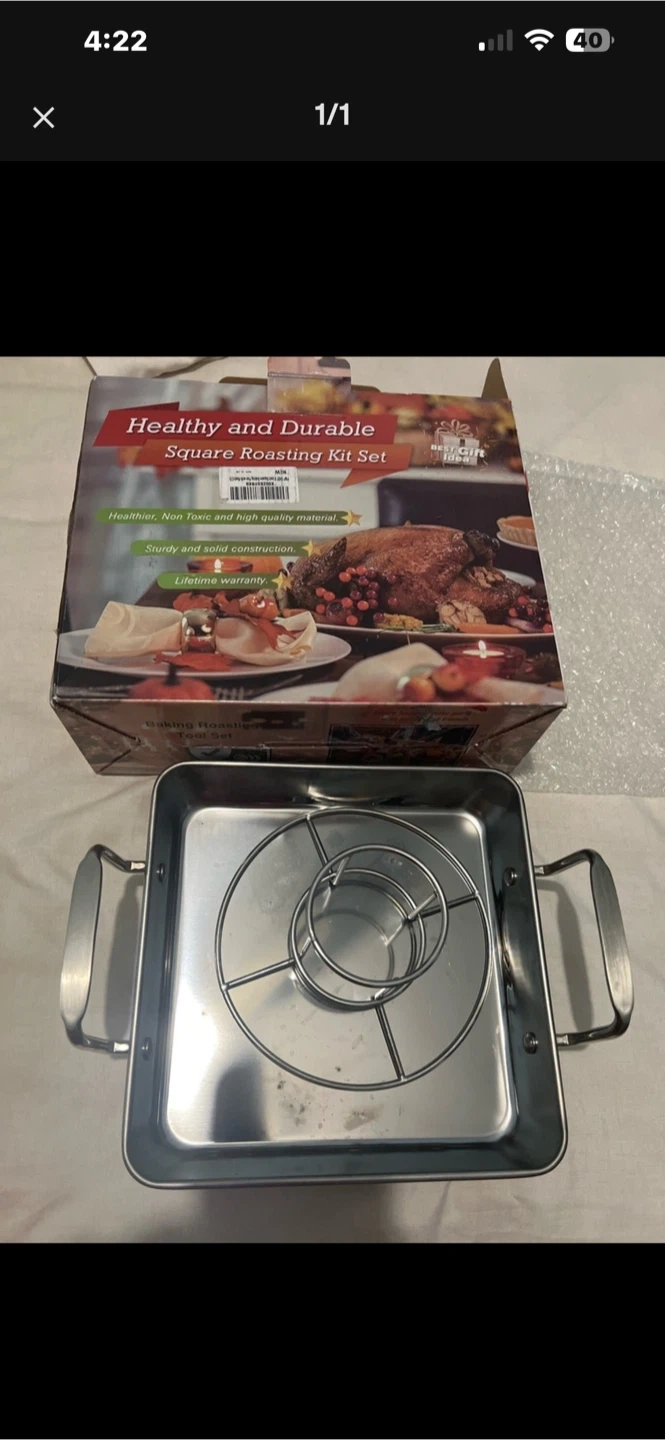 This is a healthy and durable square roasting kit set. It's made from high-quality material with sturdy and solid construction. It includes a roasting rack for your convenience.