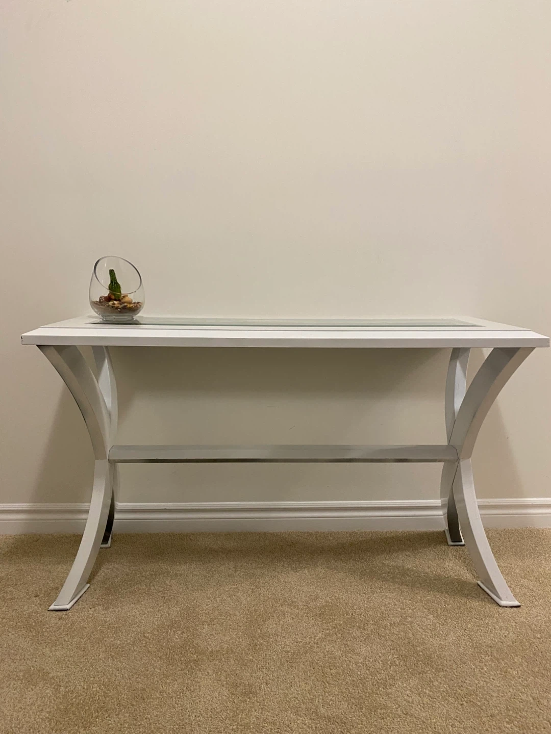 White Console Table with Glass Top