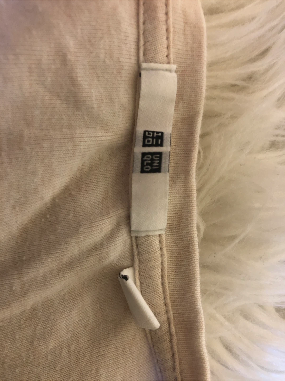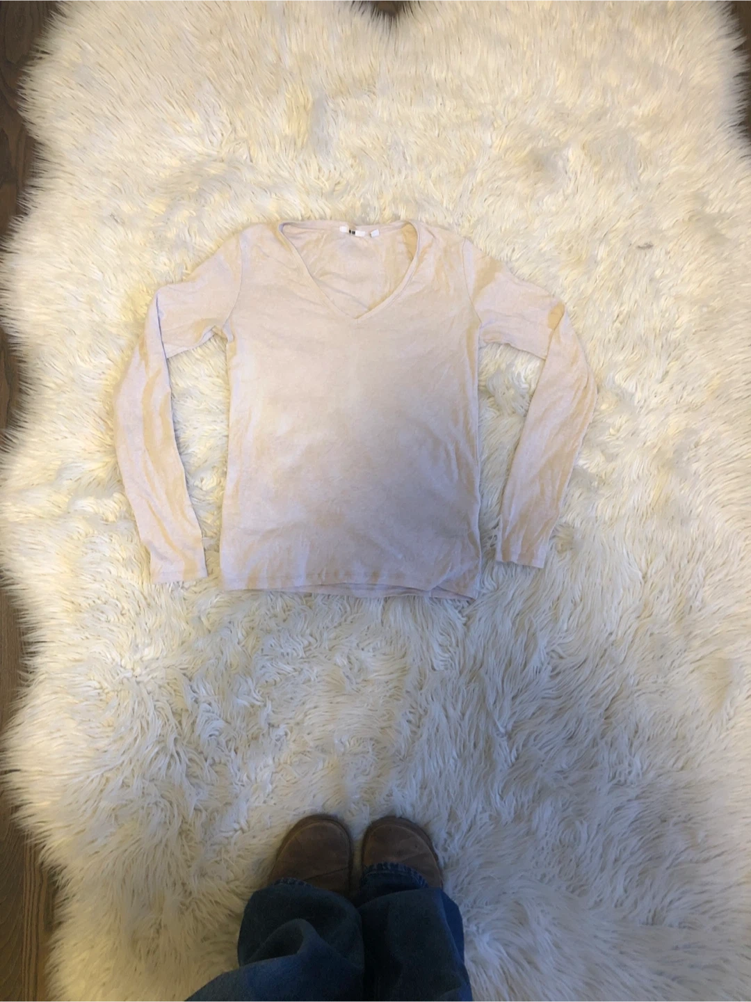 Uniqlo long sleeve V-neck top in a light beige colour. It's made from a soft, breathable fabric. This versatile top is great for layering or wearing on its own.