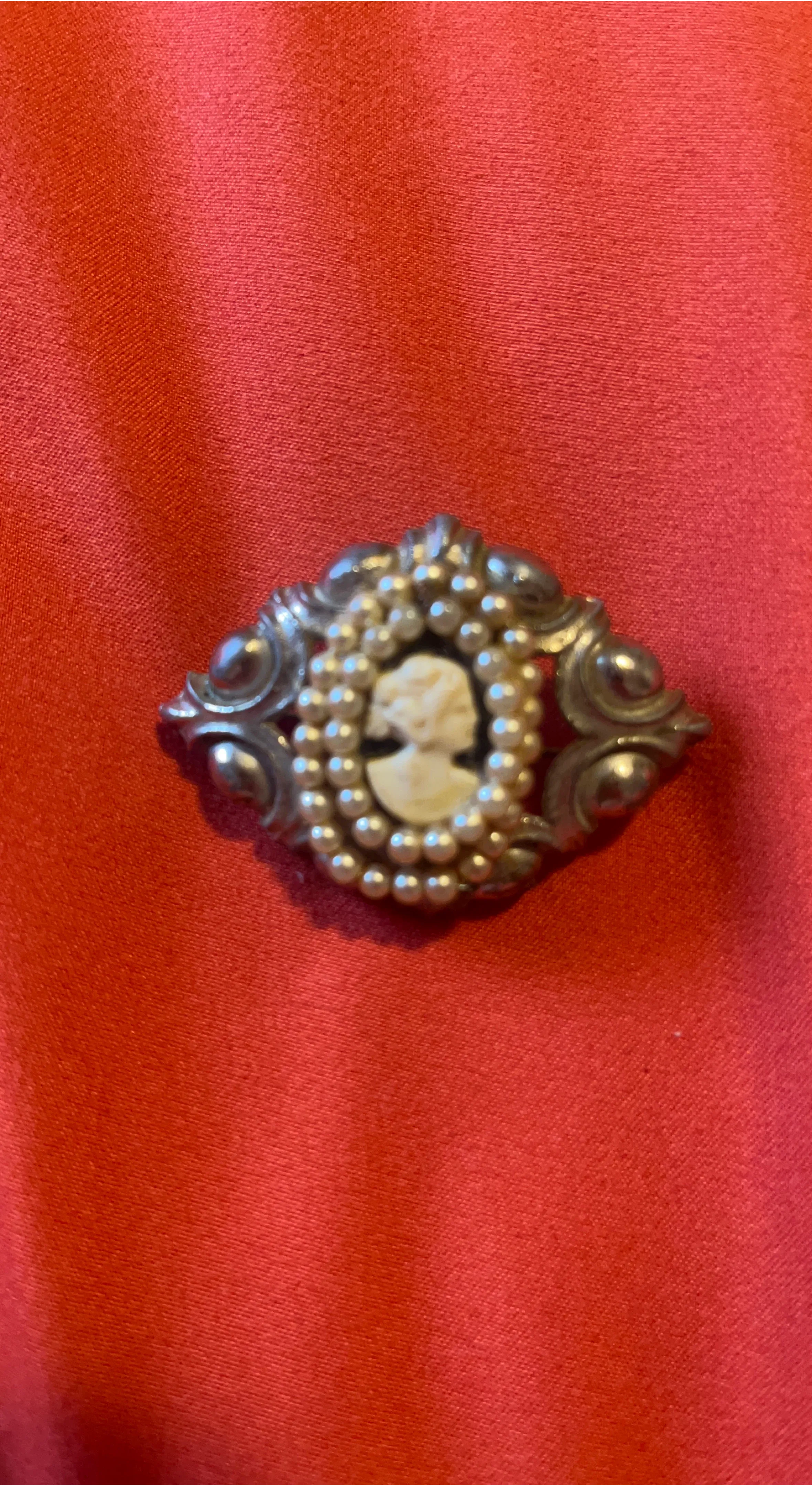 Vintage Cameo Brooch with Faux Pearls
