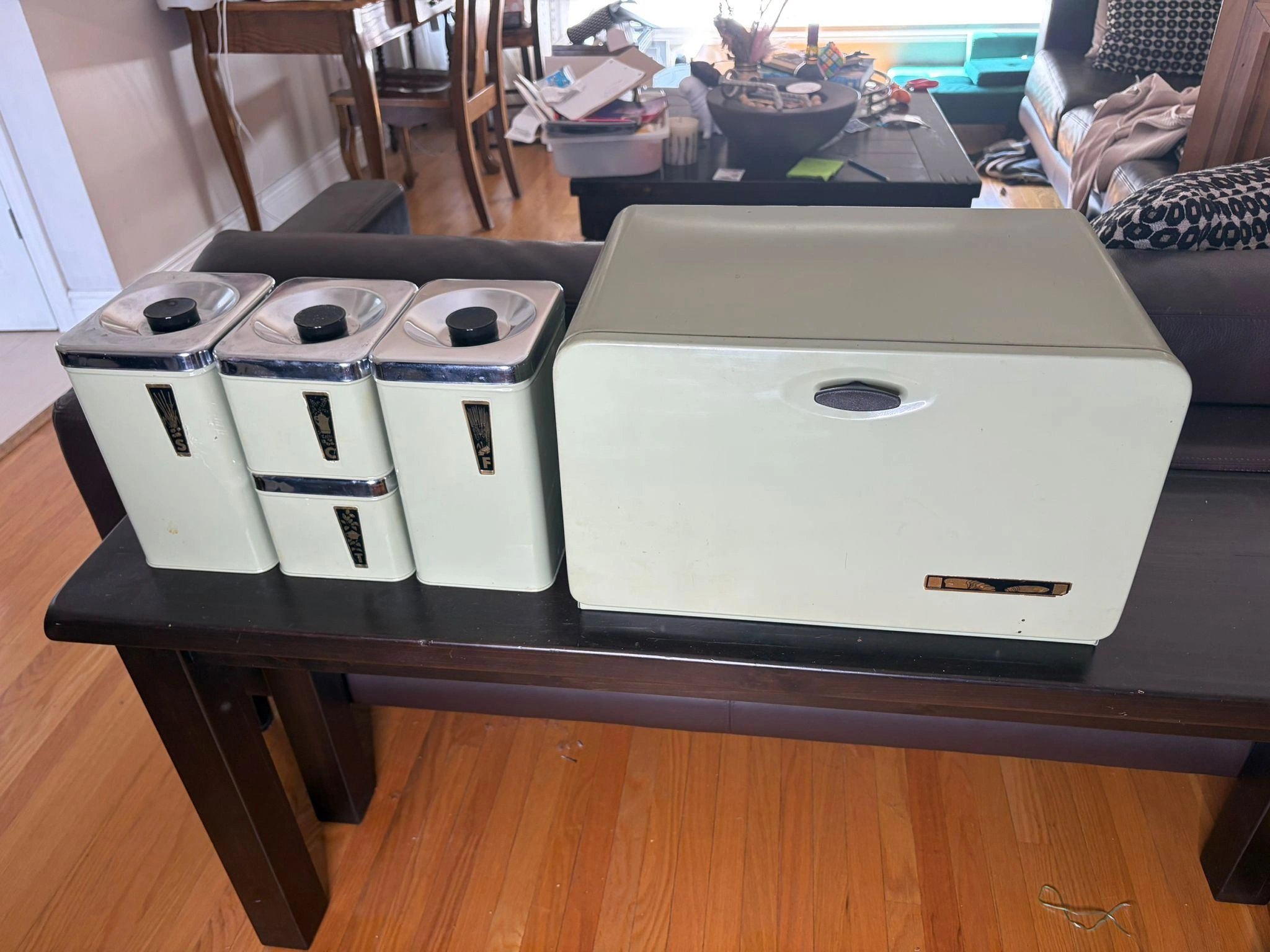 1960's Set of 5 Pieces-Green Steel Bread Box With Tea ...