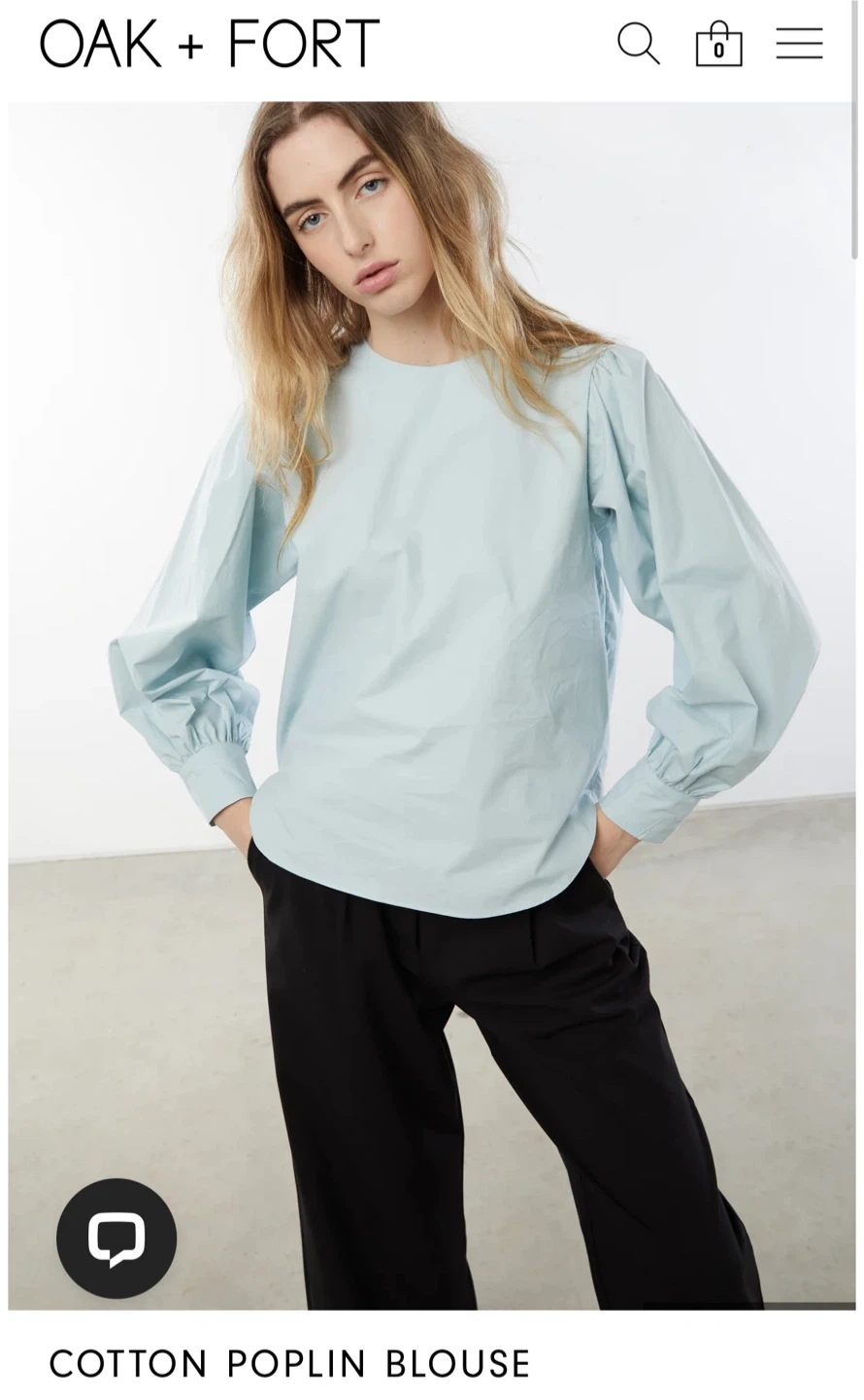 Oak + Fort blouse is made from cotton. Features a light blue colour with puff sleeves.