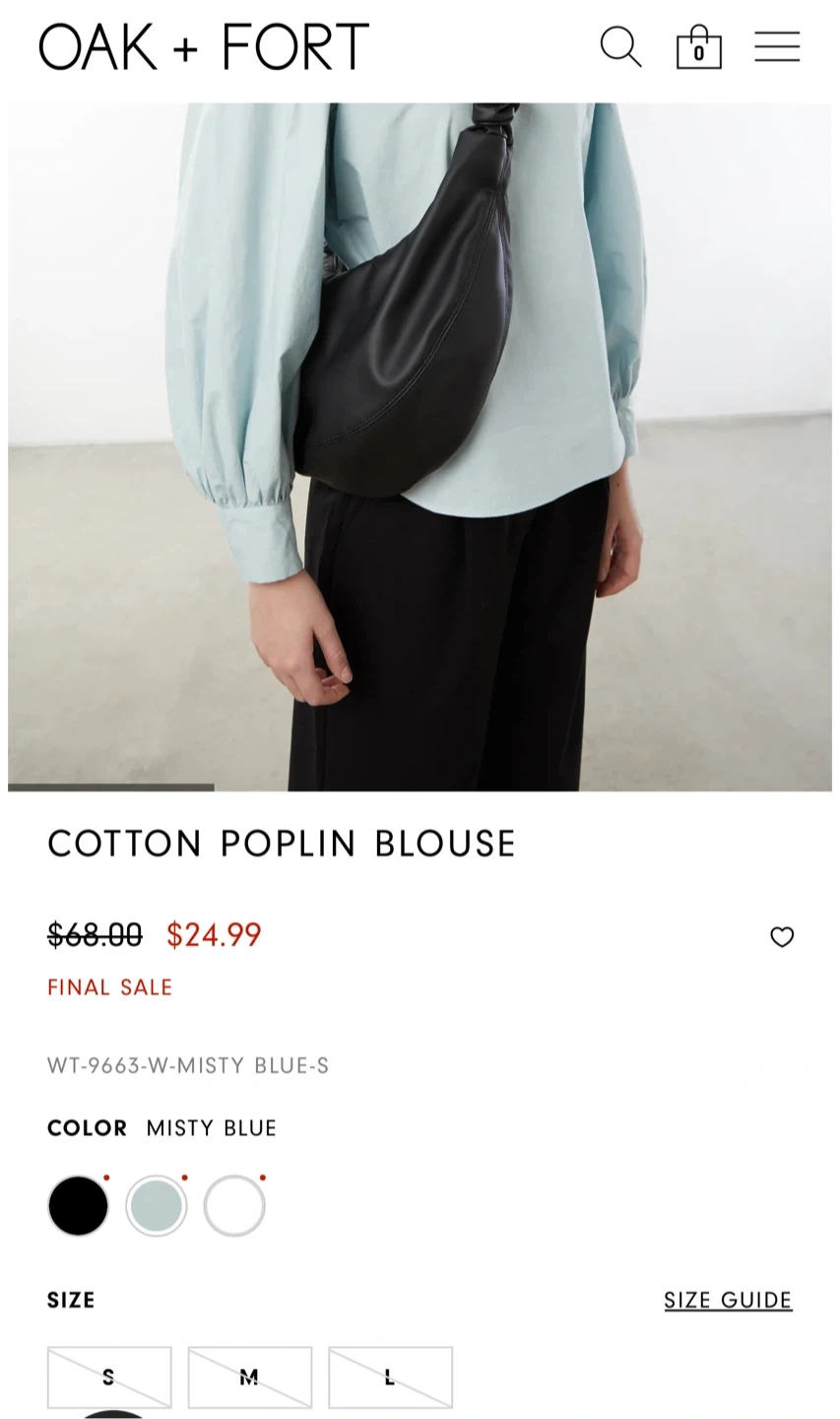 Oak + Fort Cotton Poplin Blouse - Size M