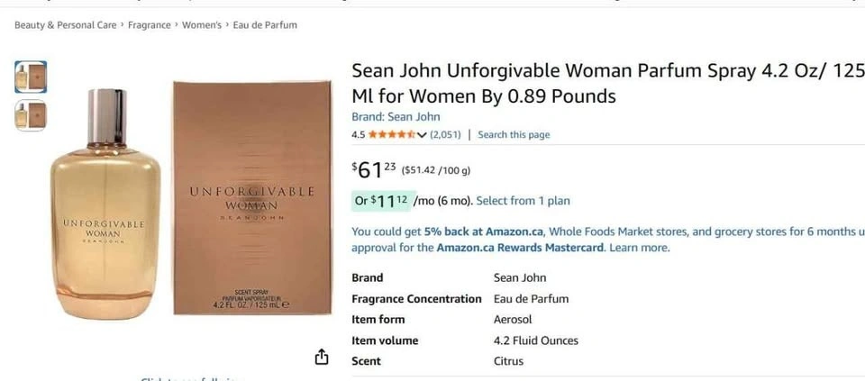 Buy & SellUnforgivable Women Sean John for women 125 mlUnforgivable Women Sean John for women 125 ml$30Rare, discontinued item. Only tested a few times. 125 ml. Cash only, pickup only.ConditionLike newBrandSean John WHERE TO MEET12831View MapSELLERAnnaBalwin100 reviews1 chats·2 favorites·18 viewsSEND CHAT TO SELLERHi Anna! I’m interested in your listing.Hi Anna! I’m interested in your listing.Get the Karrot app to chatSign In to chat