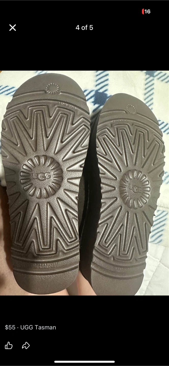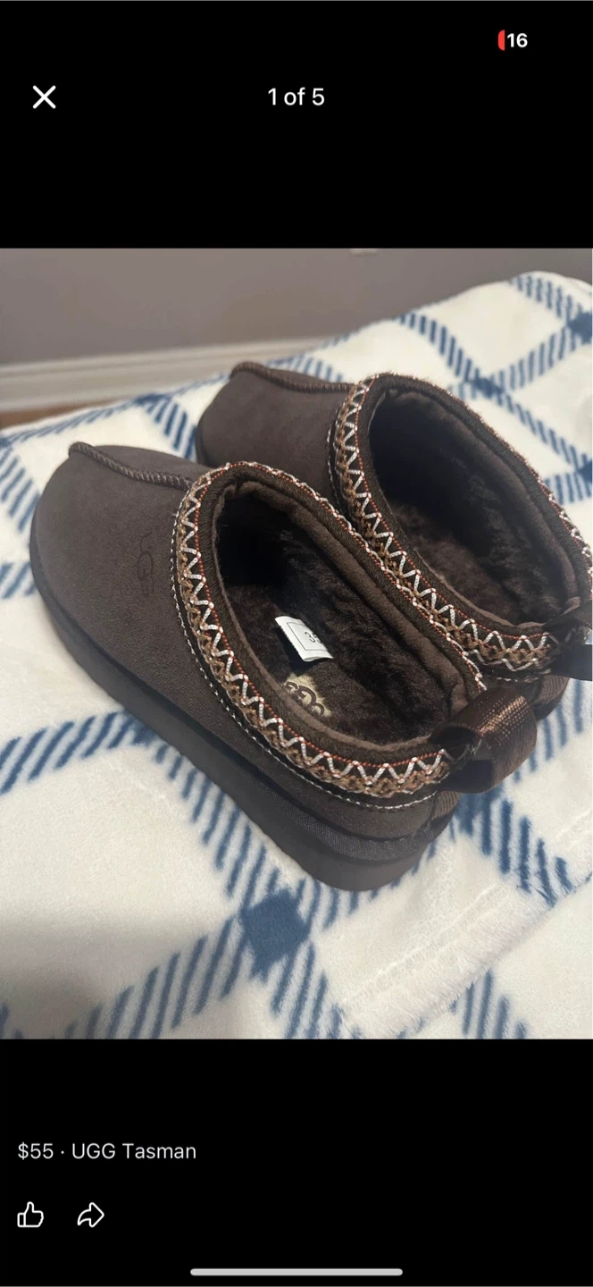 Cozy UGG Tasman slippers in a rich brown colour. These comfortable slippers feature a plush lining and a durable sole. Perfect for keeping your feet warm indoors!