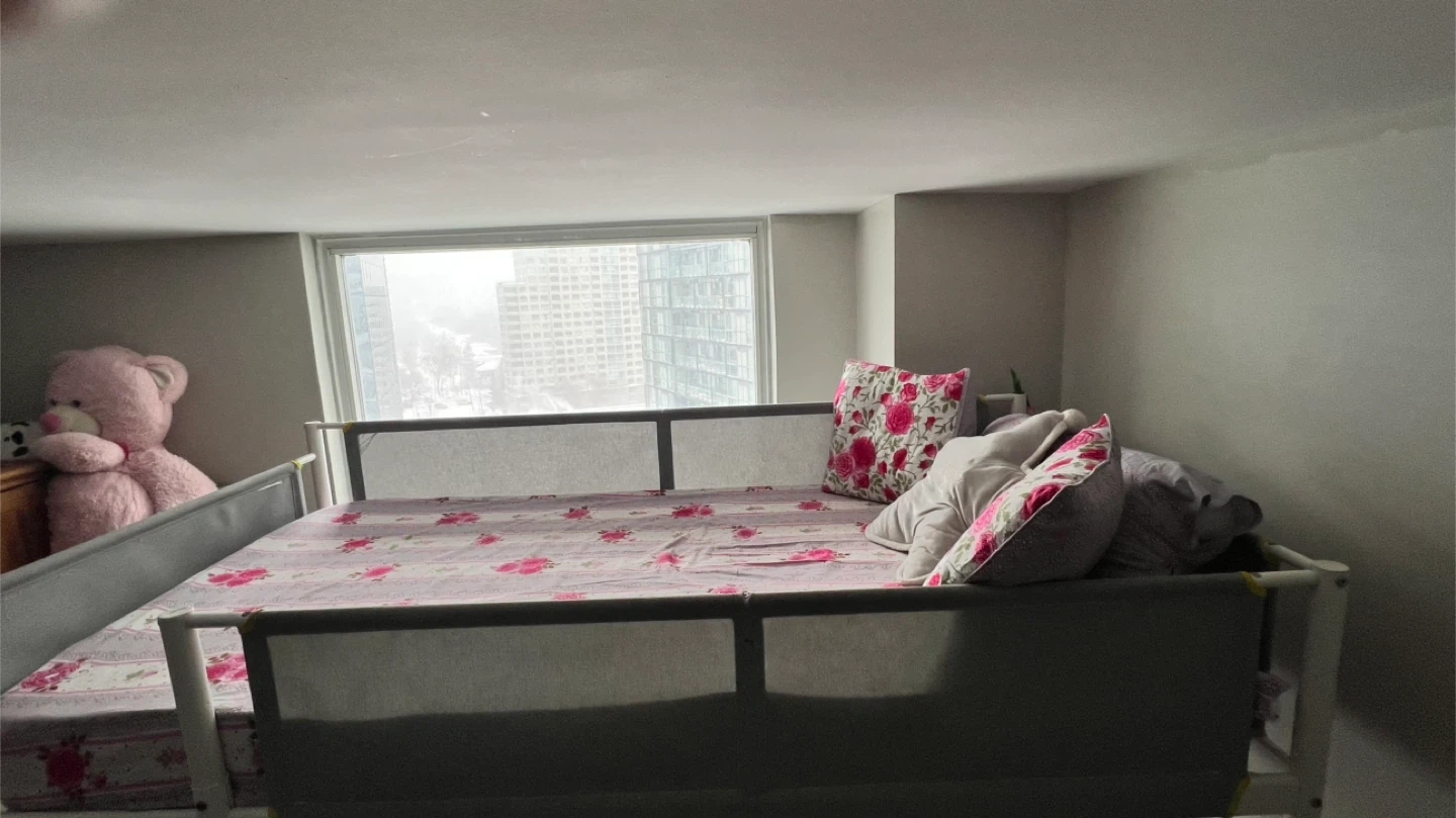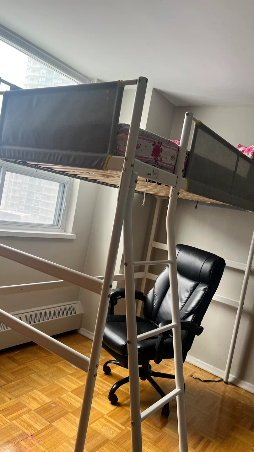 IKEA vitval Loft Bed Frame with Grey Fabric Sides with mattress