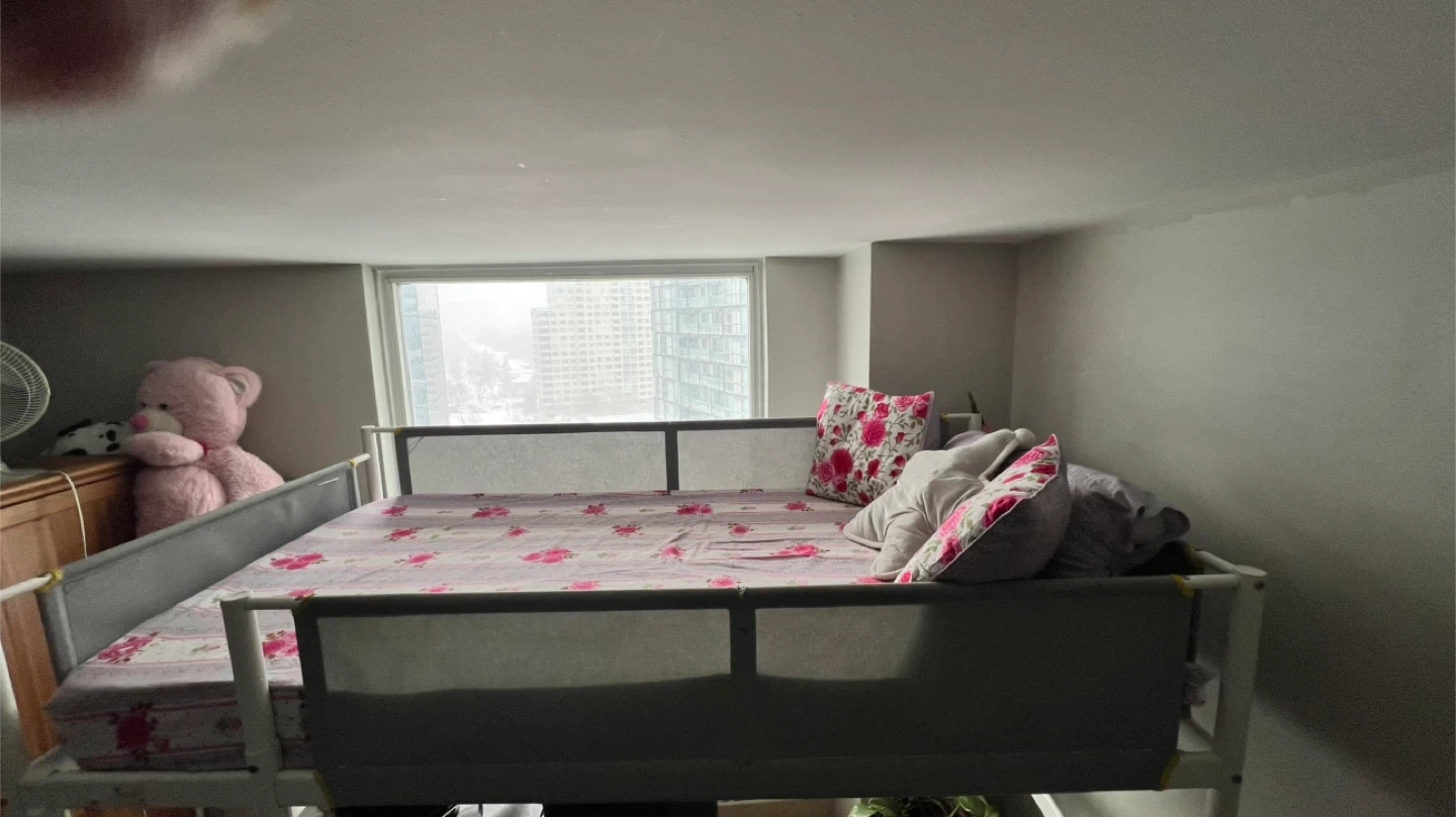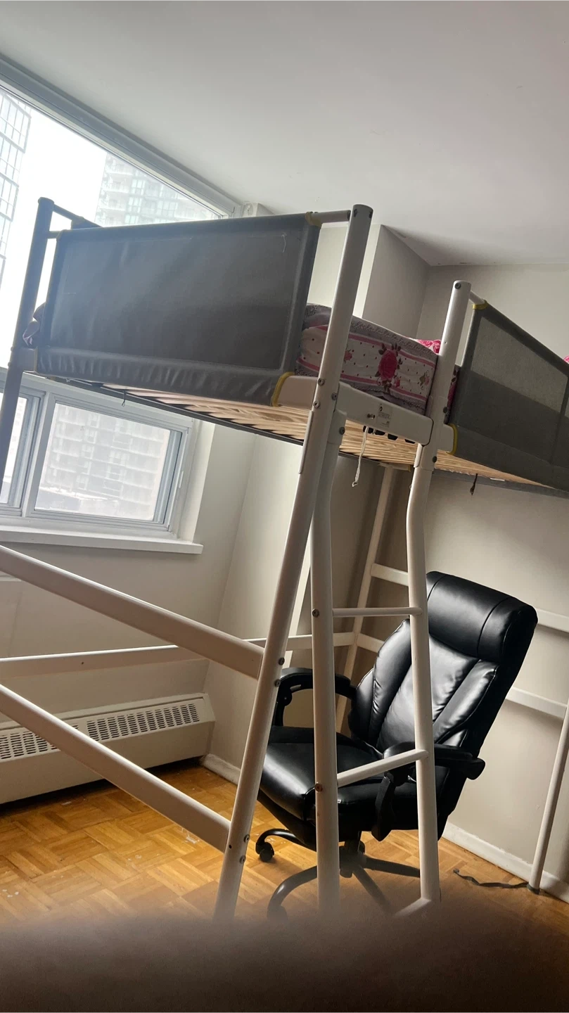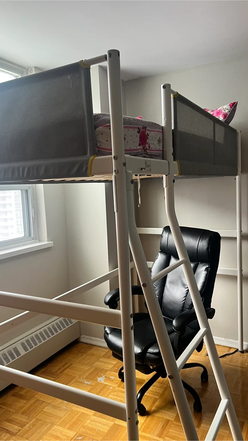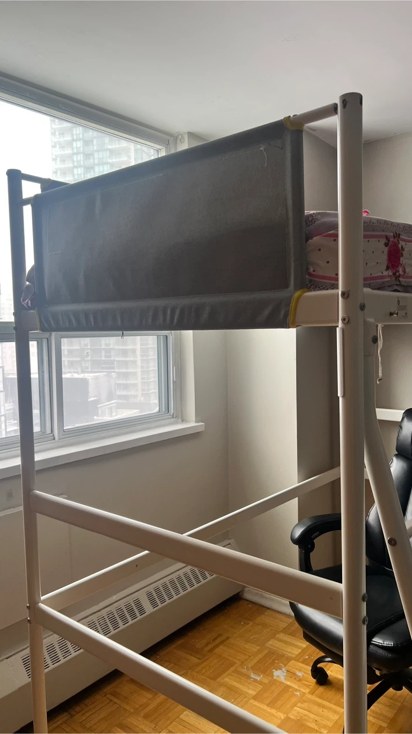 IKEA vitval Loft Bed Frame with Grey Fabric Sides with mattress