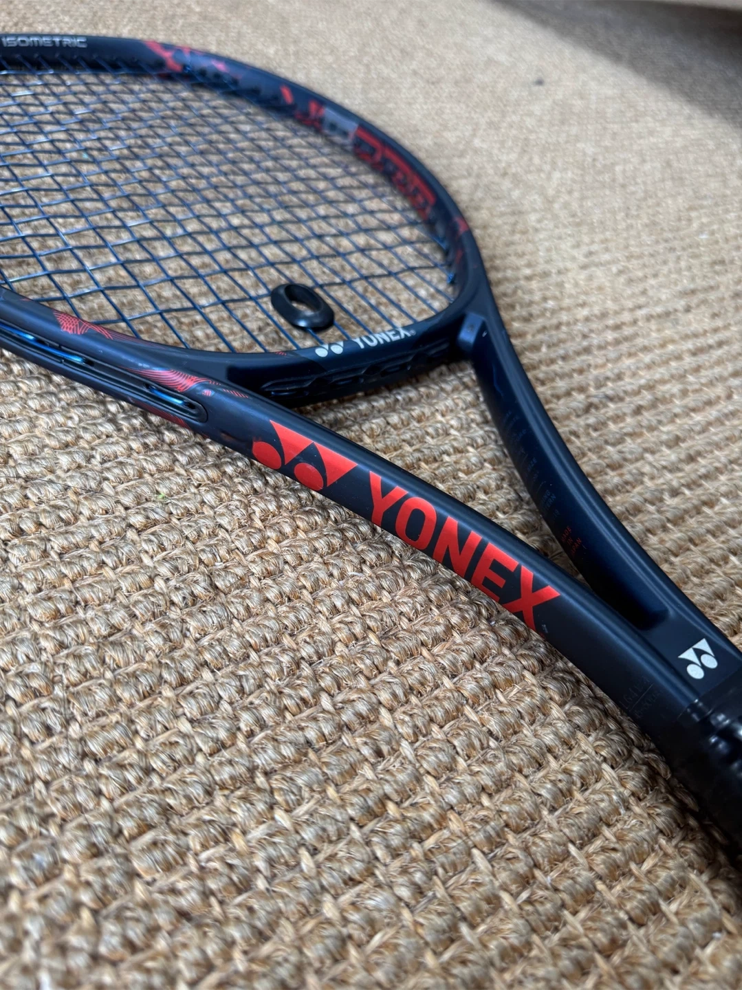 Yonex VCORE PRO tennis racket newly restrung to specs.