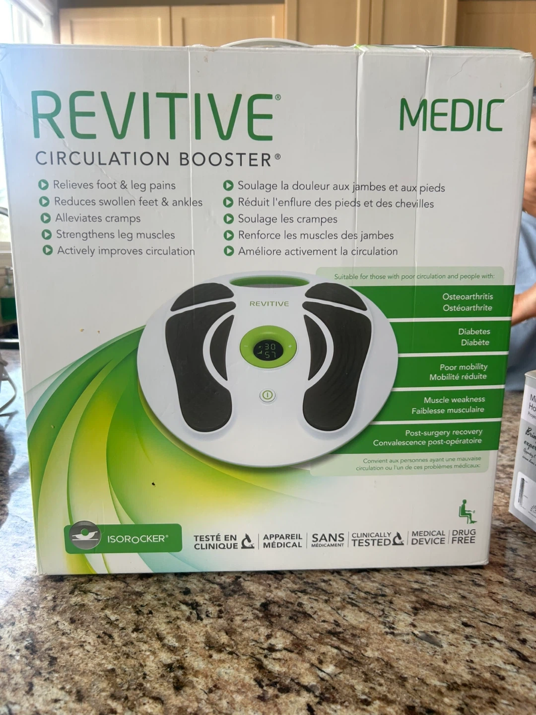 This RevITIVE Medic Circulation Booster helps relieve foot and leg pain. It strengthens leg muscles and actively improves circulation. Suitable for those with poor circulation, osteoarthritis, and diabetes.
