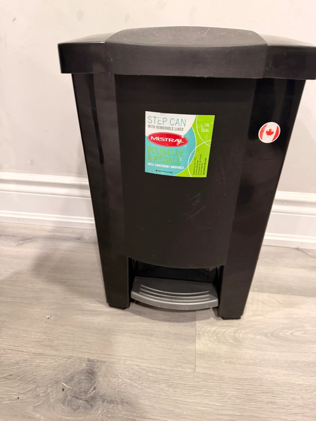 This Mistral step can has a 19L capacity and a removable liner. It's made of plastic and features a convenient foot pedal for hands-free operation. A great addition for any kitchen or bathroom! 5$ each