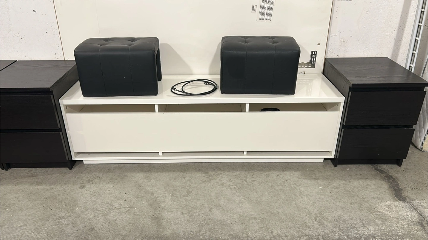 Buy & SellIKEA MALM 2 Drawer Nightstands & White Storage BenchIKEA MALM 2 Drawer Nightstands & White Storage Bench$80Two black MALM two-drawer nightstands. White storage bench with two black button tufted ottomans. Great for bedroom or living room.ConditionLike newWHERE TO MEETCheck LocationView MapSELLERverifiedmharSix Points Plaza1358 reviews1 chats·1 favorites·44 viewsSEND CHAT TO SELLERHi mhar! I’m interested in your listing.Hi mhar! I’m interested in your listing.Get the Karrot app to chatSign In to chat