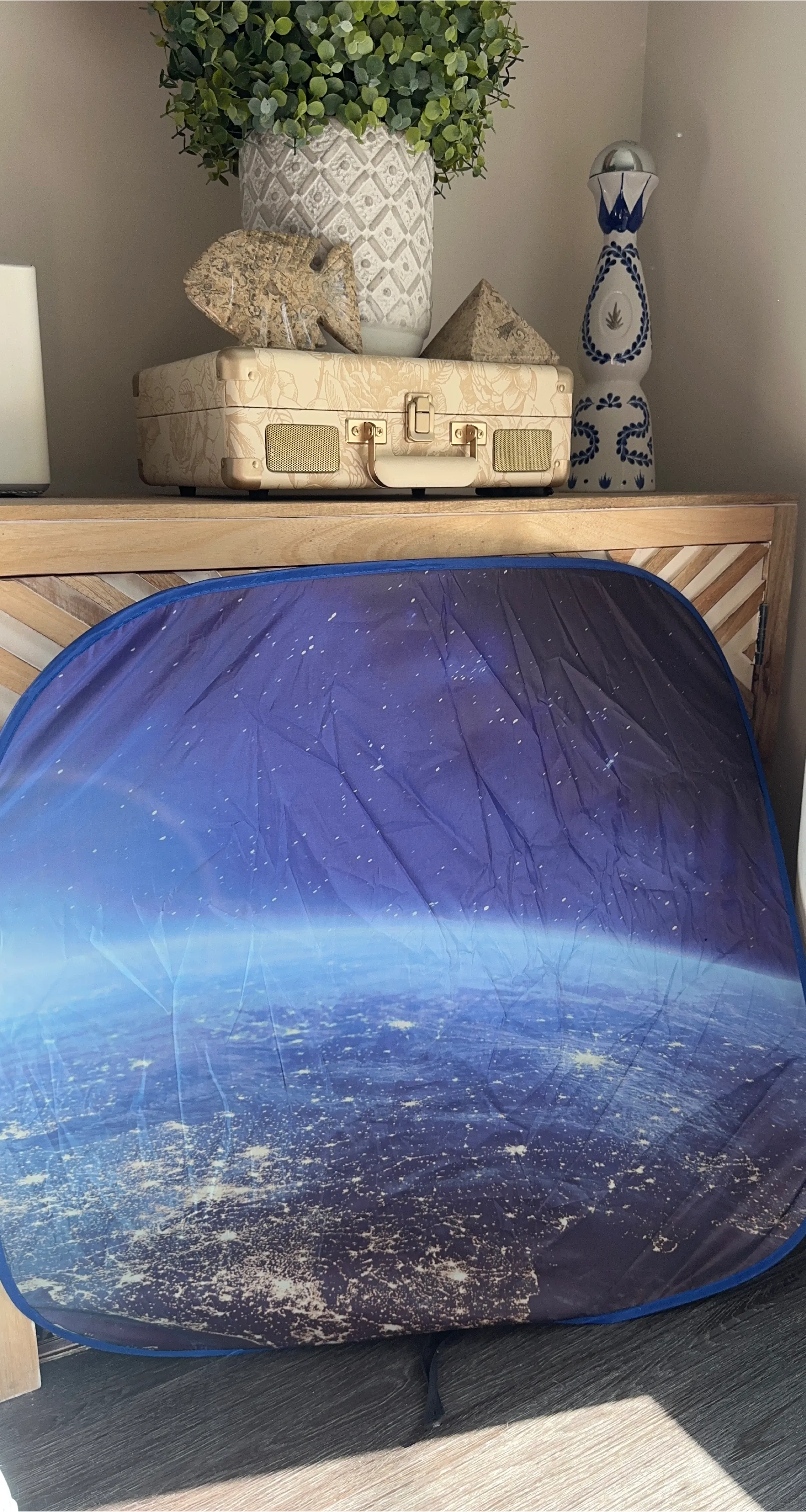 This car sunshade Is designed to fit most car windshields and helps keep your vehicle cooler on sunny days. The sunshade is made of durable material and folds up for easy storage.