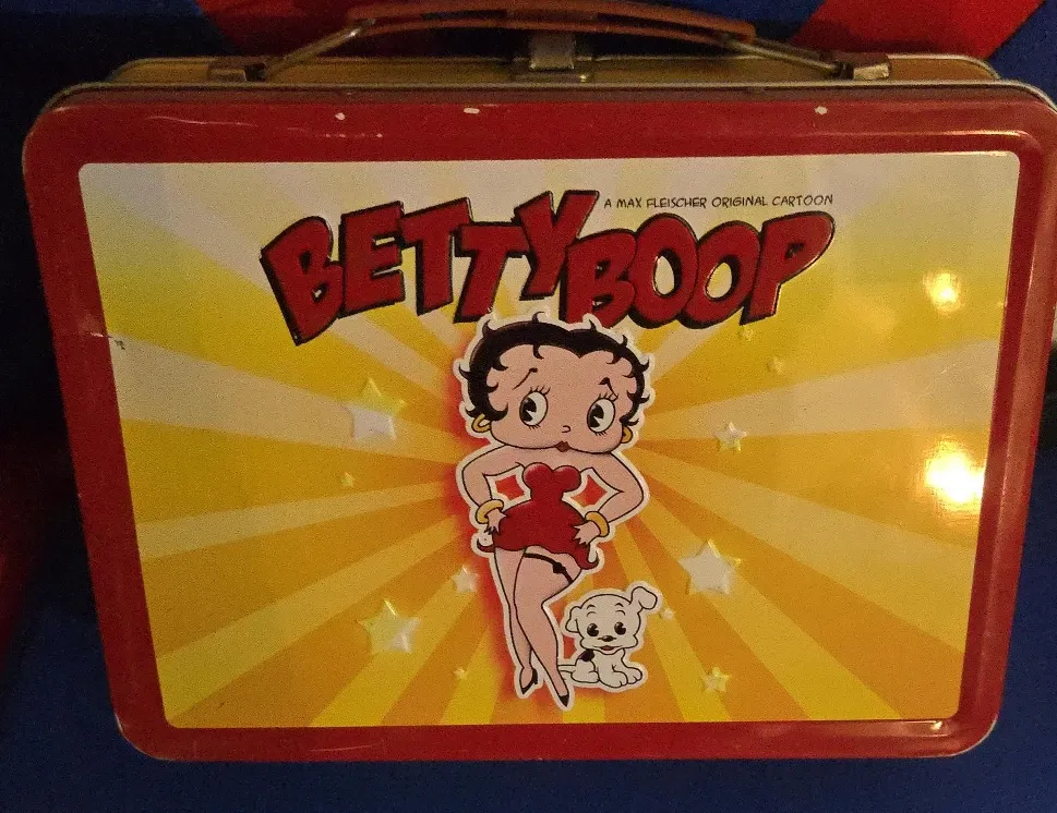 Selling a cute Betty Boop lunchbox! It has a red trim and a fun design featuring Betty Boop and her dog. It's in good condition, perfect for a collector or for bringing your lunch to work or school