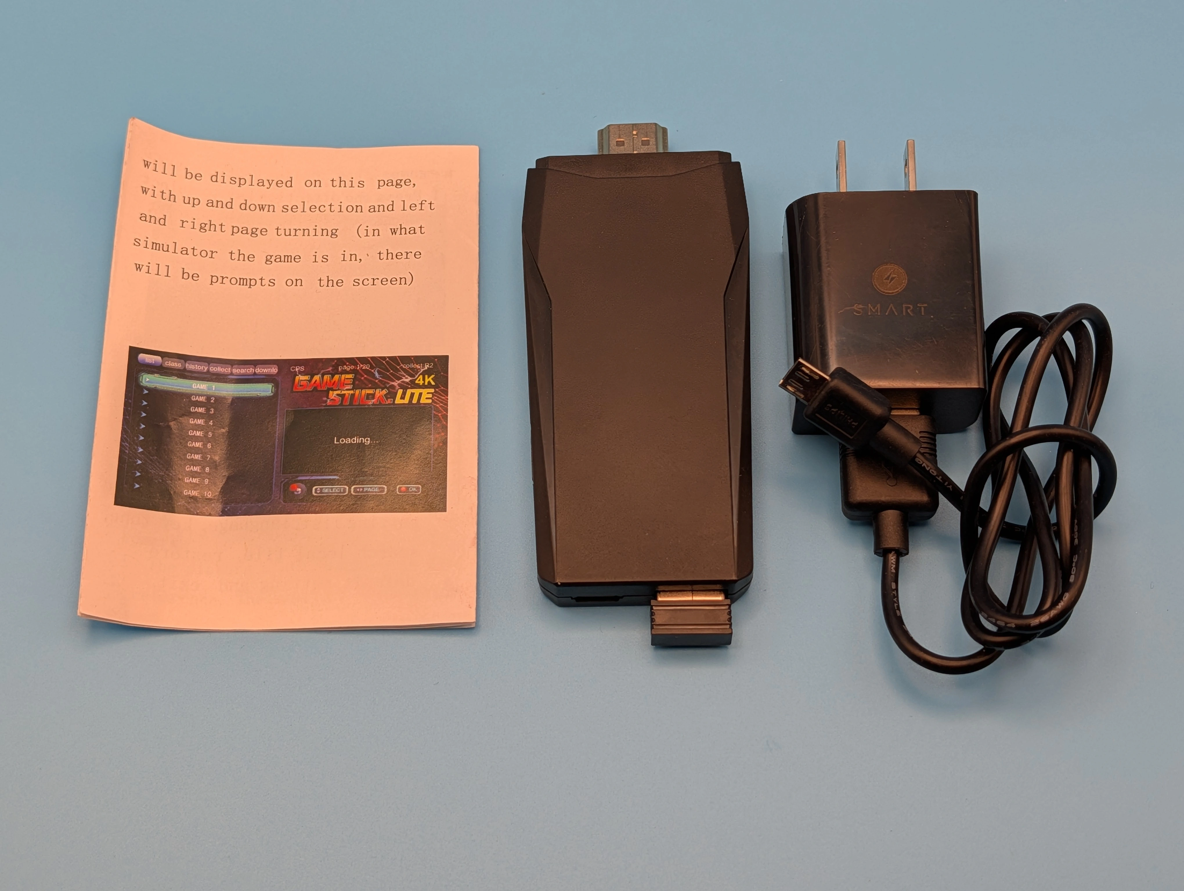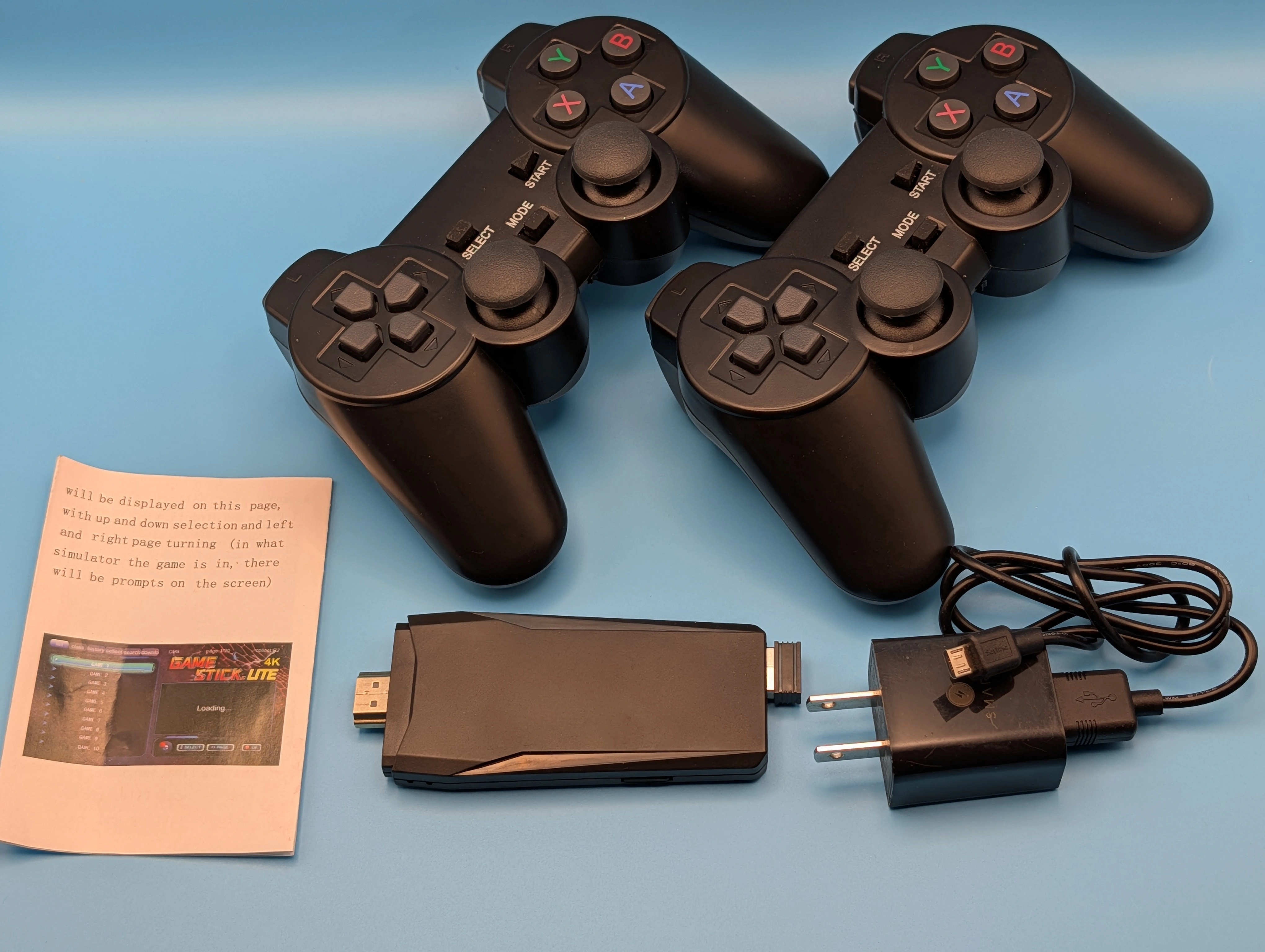 Selling a 4K Game Stick Lite! It comes with two wireless controllers, a power adapter, and instructions. Get ready to enjoy classic games with this easy-to-use system