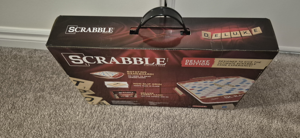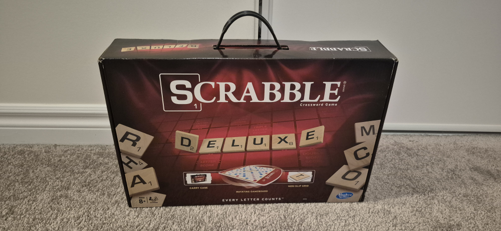 Selling a NEW Scrabble Deluxe Edition crossword game! It's designed to give the ultimate Scrabble game experience. The game features a rotating gameboard that means no reading upside-down, and a non-slip grid that keeps tiles in place. It also comes with a carry case, lift the handle and go! This is brand new and has never been opened or used. It's currently selling at Canadian Tire for $55.99+ tax so this is a deal!