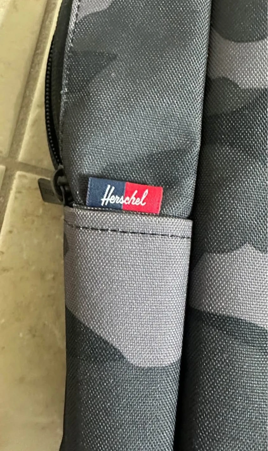 This Herschel backpack features a cool grey camouflage print. It's made from durable fabric and has multiple internal pockets for organization. Great for everyday use or travel!