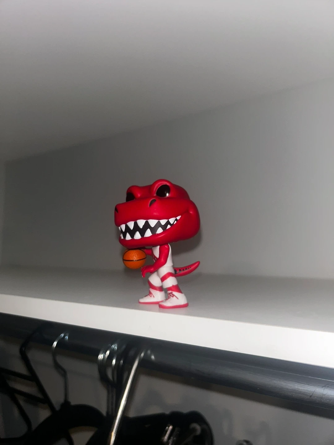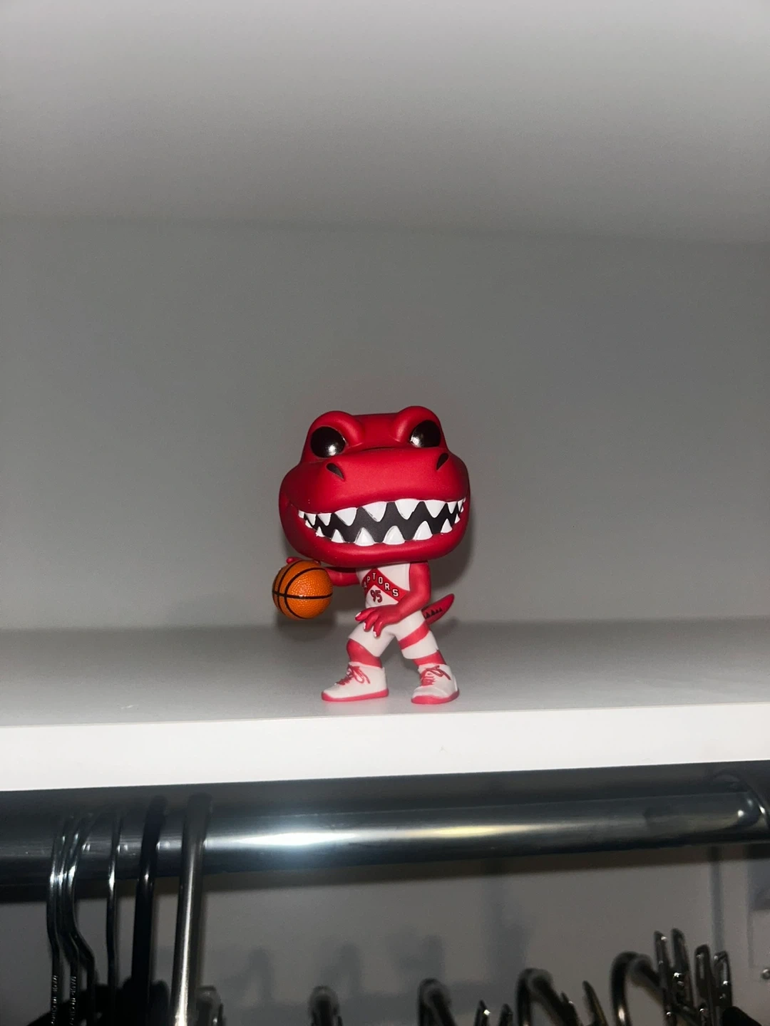 This is a Funko Pop! figure of the Toronto Raptors mascot. It's red with a basketball. A great collectible for any Raptors fan! Does not come with the box.