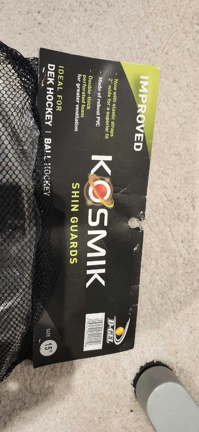 Brand new Kosmik 15" shin guards for dek hockey. Designed for superior protection and ventilation to keep you comfortable and safe. Features durable construction, a ventilated design, and adjustable straps for a secure fit. If you're seeing this ad, they are still available. Asking $35 obo.