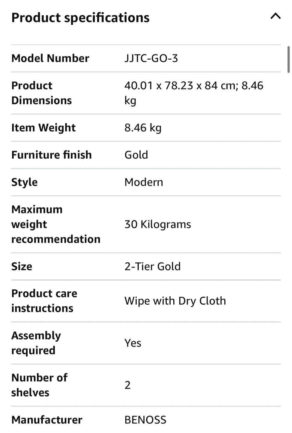 BENOSS Gold Bar Cart - 2 Tier on Wheels