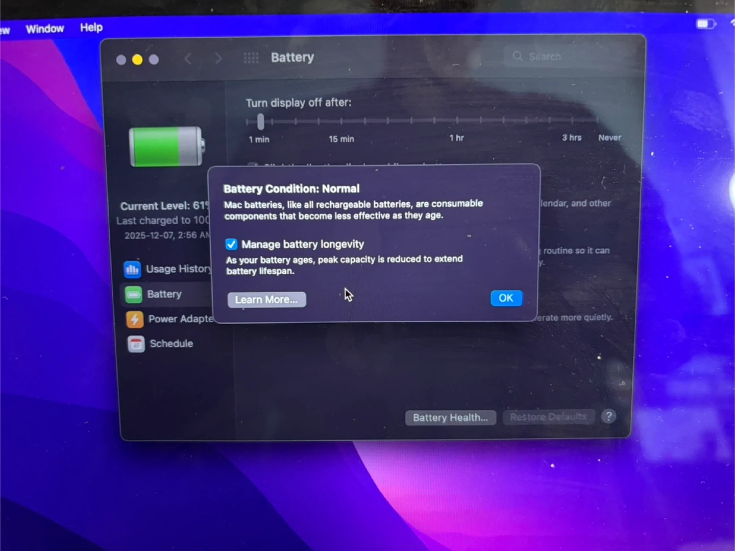 π Battery: Normal condition (holds charge well)