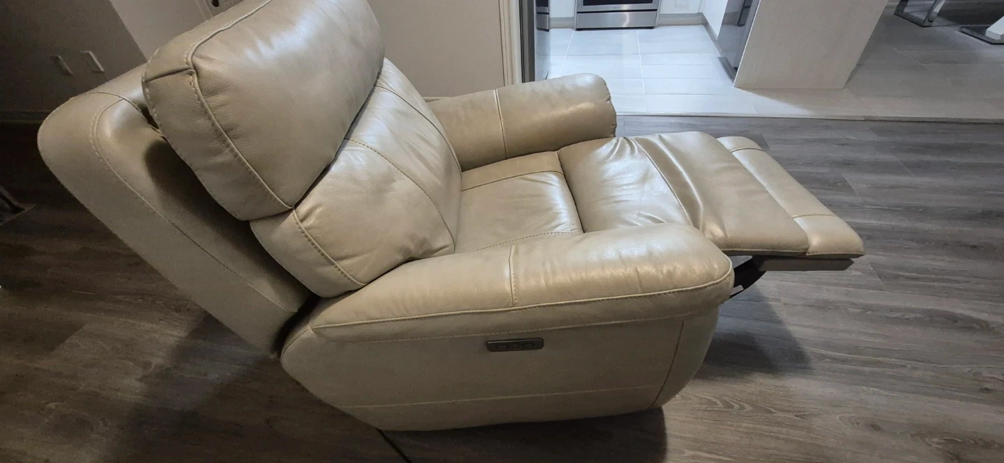 Cream Leather Power Recliner Chair