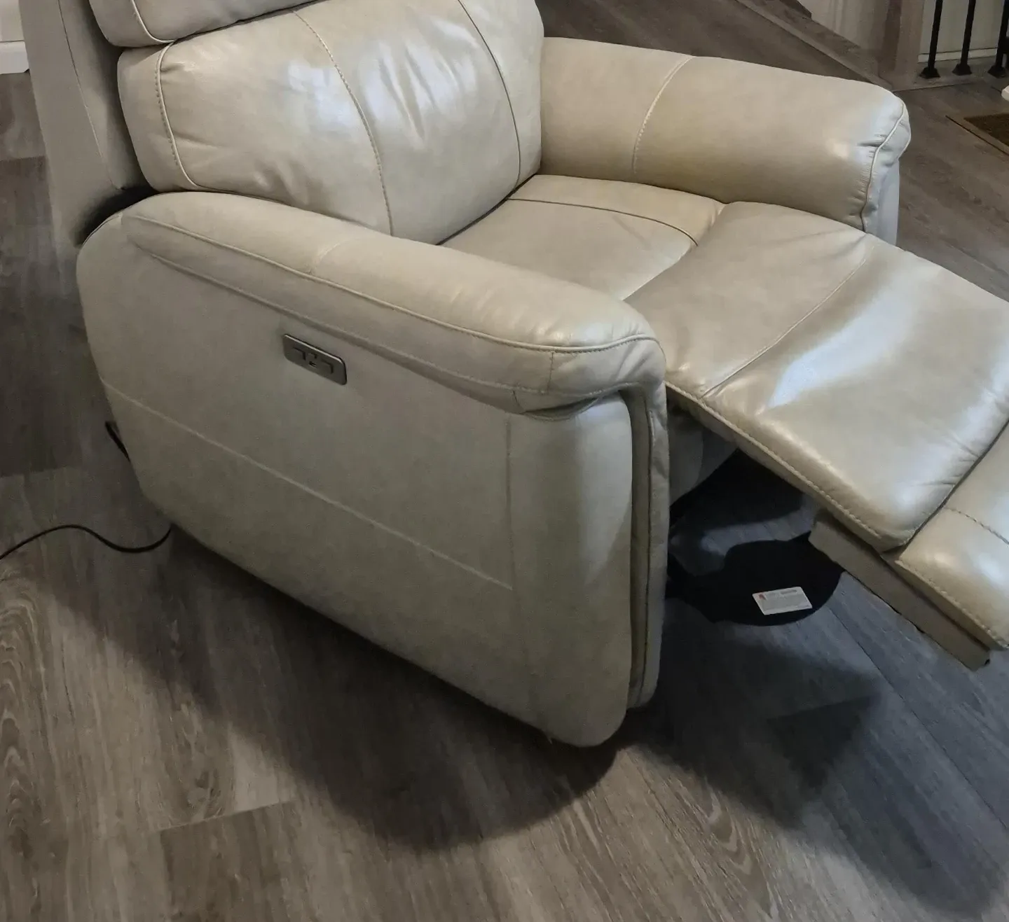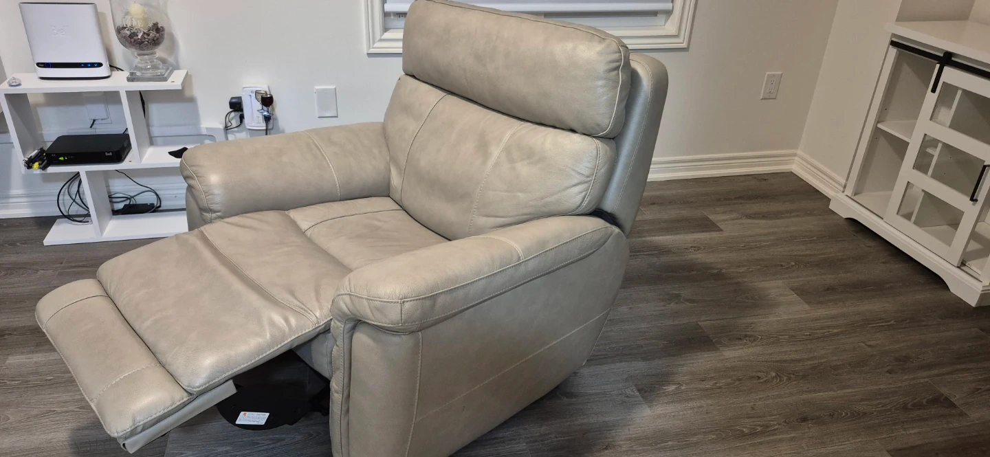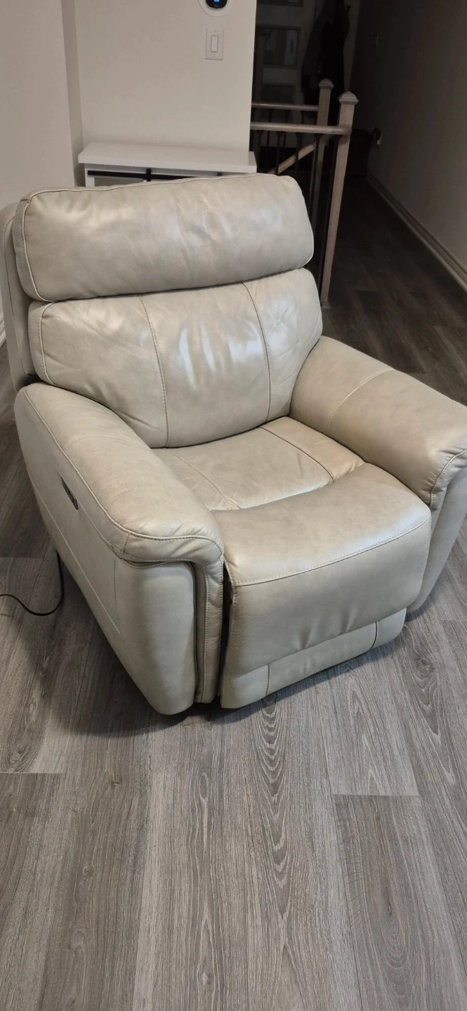 Cream Leather Power Recliner Chair