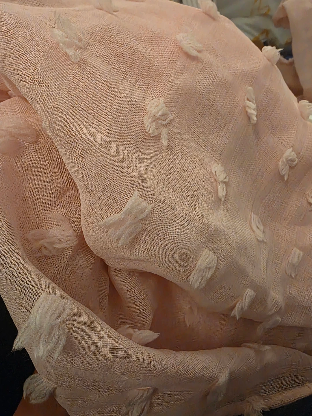 Add a touch of soft elegance to any room with these lovely pink sheer curtains. They feature a subtle pom pom texture throughout the fabric, creating a delicate and airy feel. Perfect for diffusing light and adding privacy.