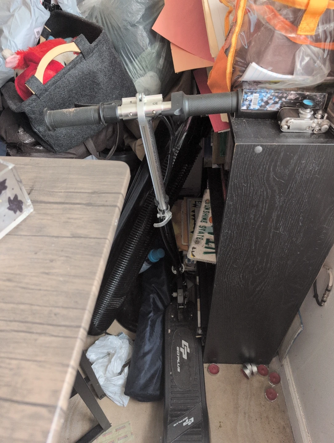 GoPlus electric scooter. It features a black deck and handlebars with silver accents. This scooter is suitable for riders looking for a fun way to get around. I can't find the charger , hence why I'm selling it so low. It works perfectly tho. I used it 5 times only.