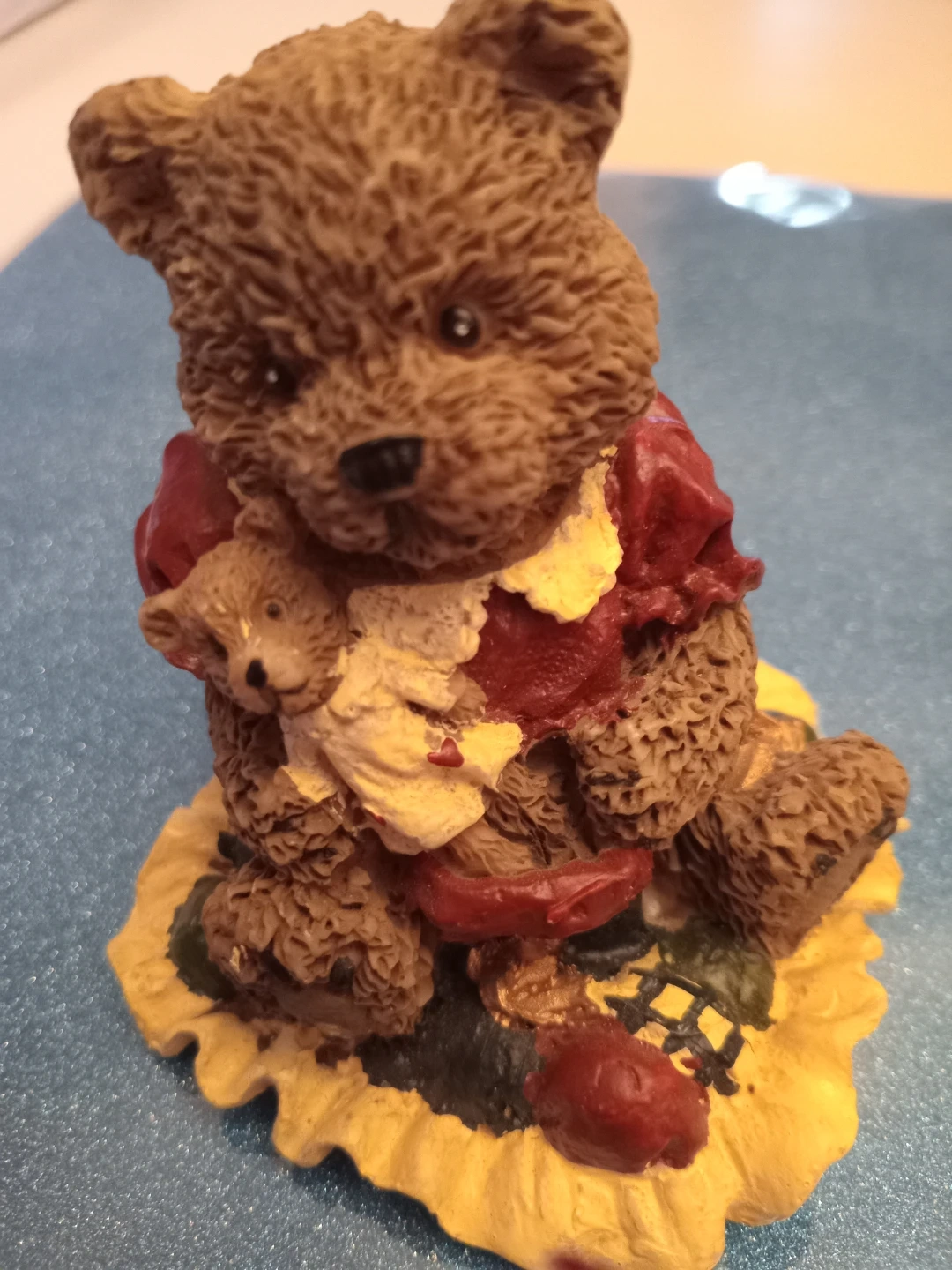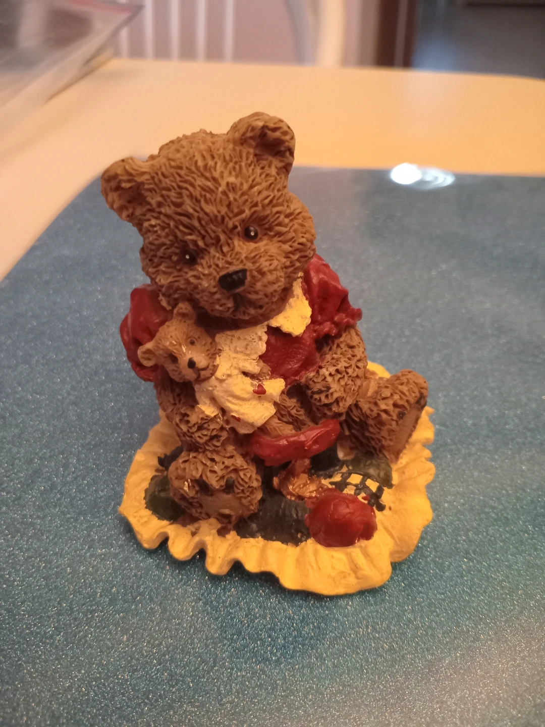 Selling a charming Boyds teddy bear figurine. From theWindsor Bear collection. It's a lovely piece for collectors or anyone who appreciates cute decor. The bear is holding a smaller bear and is wearing a red and cream coloured outfit. It's in good condition and ready to brighten up your space