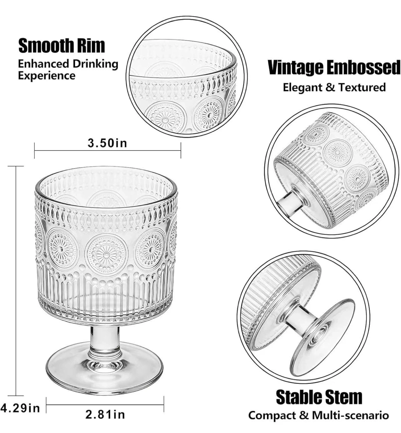 Vintage Embossed Glass Dessert Bowls - Set of 6