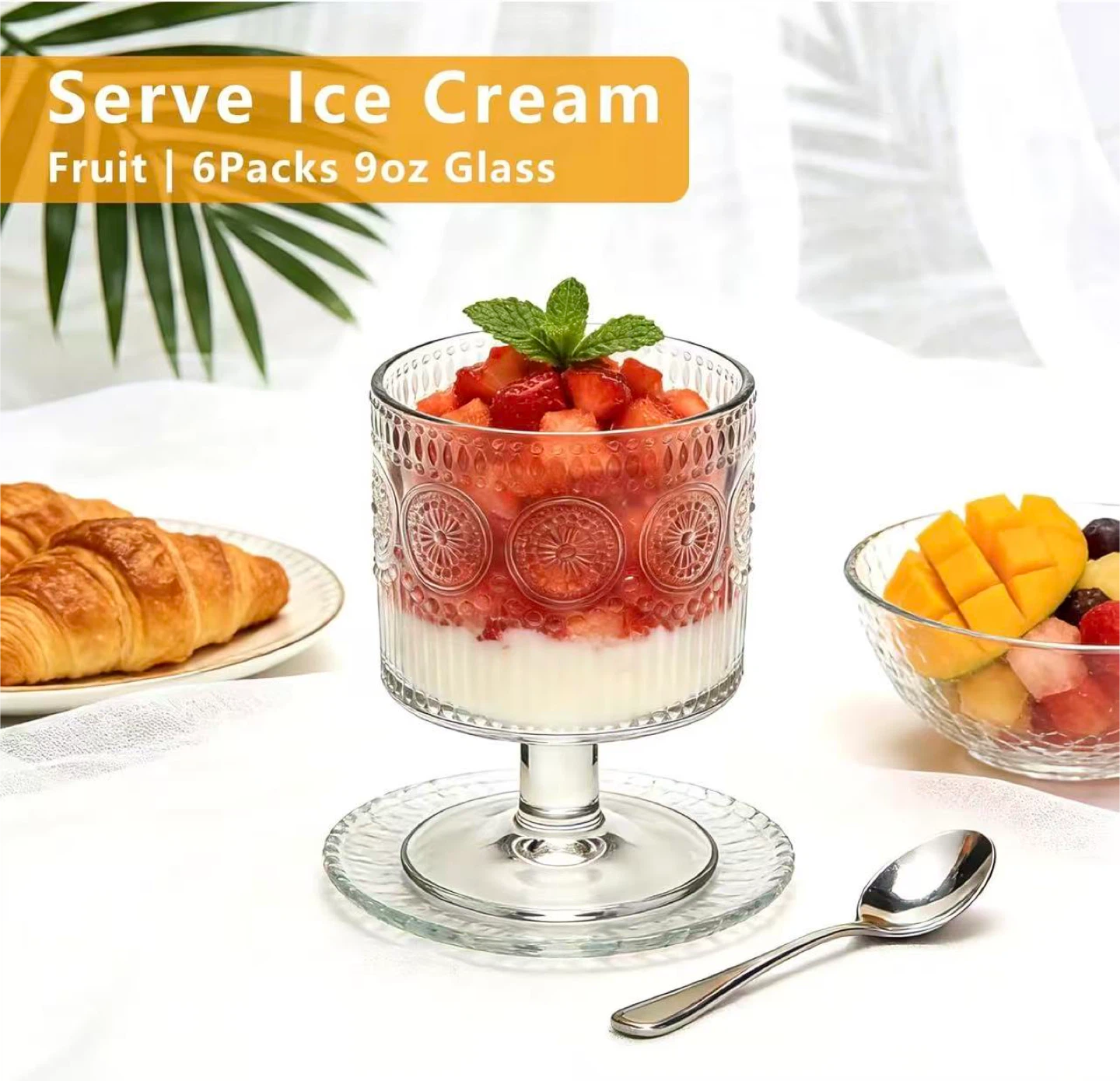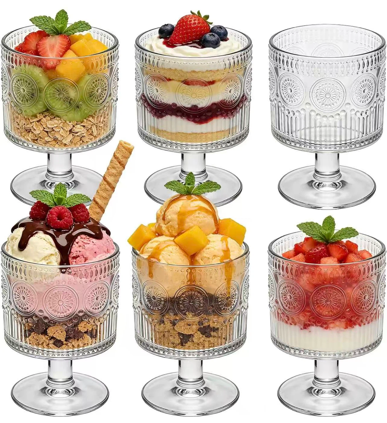6 Pack 10 oz Glass Dessert Bowls/Cups, Glass Ice Cream Cups Bowls for Sundae, Fruit, Salad, Snack & Cocktail - Perfect for Home Use, Weddings, Parties & Special Occasions