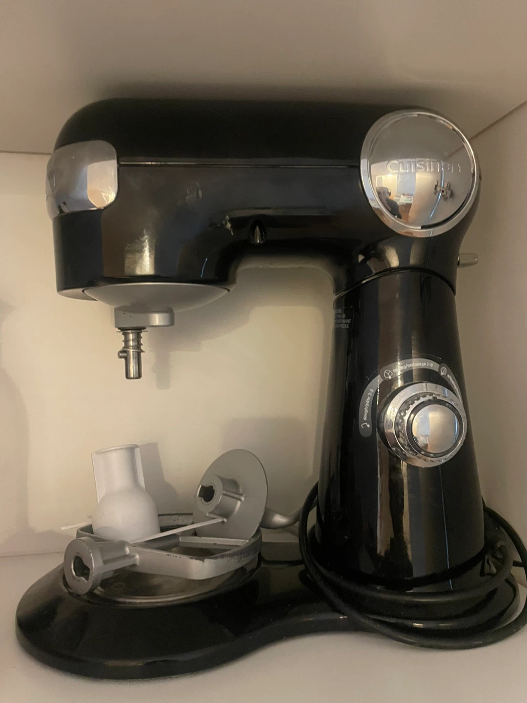 Selling a kitchen aid stand mixer in black! It's in great condition and ready to help with all your baking needs. Perfect for mixing dough, batters, and more. I’ve used it maybe once, has all attachments. Can drop off.