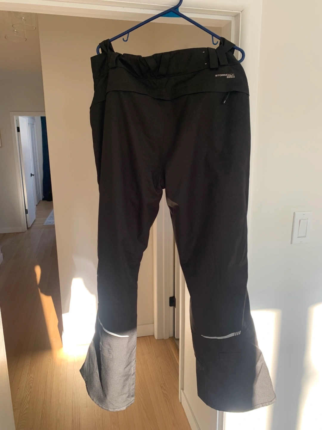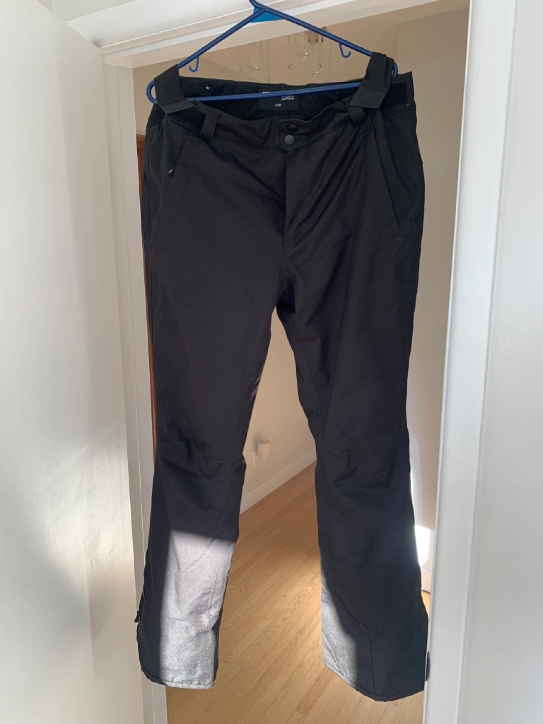 Black ski pants. Size large. Excellent condition. Water resistant outer shell. Adjustable waist. Some reflective detailing.