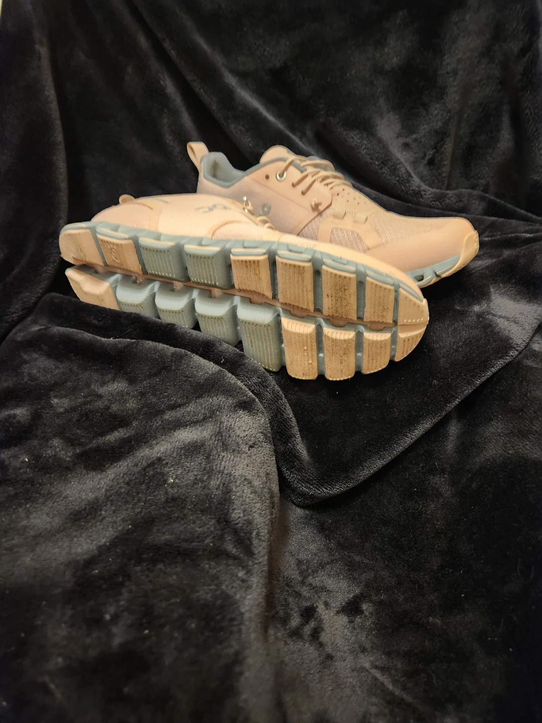 Selling a pair of On Cloud waterproof running shoes in a lovely light pink color. They are in great condition and ready for your next run! Size 7.5 US