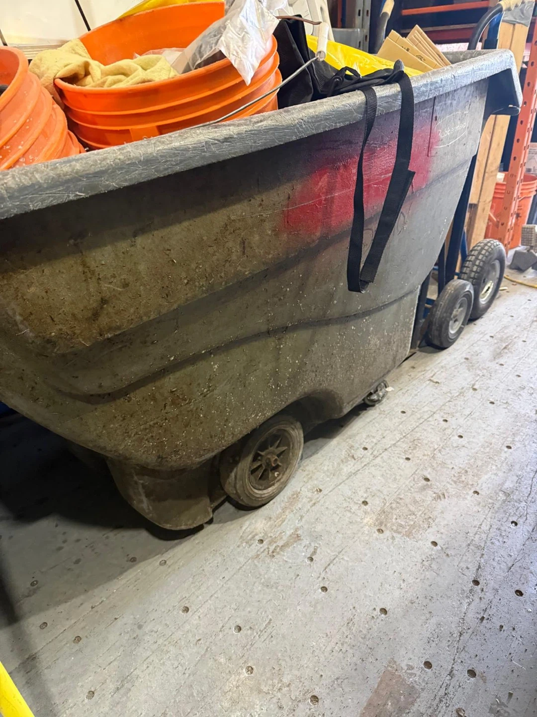 This is a Kleton dump truck, grey in colour, with wheels. It has been used for hauling purposes and shows signs of wear. It's a durable piece of equipment for moving heavy loads.