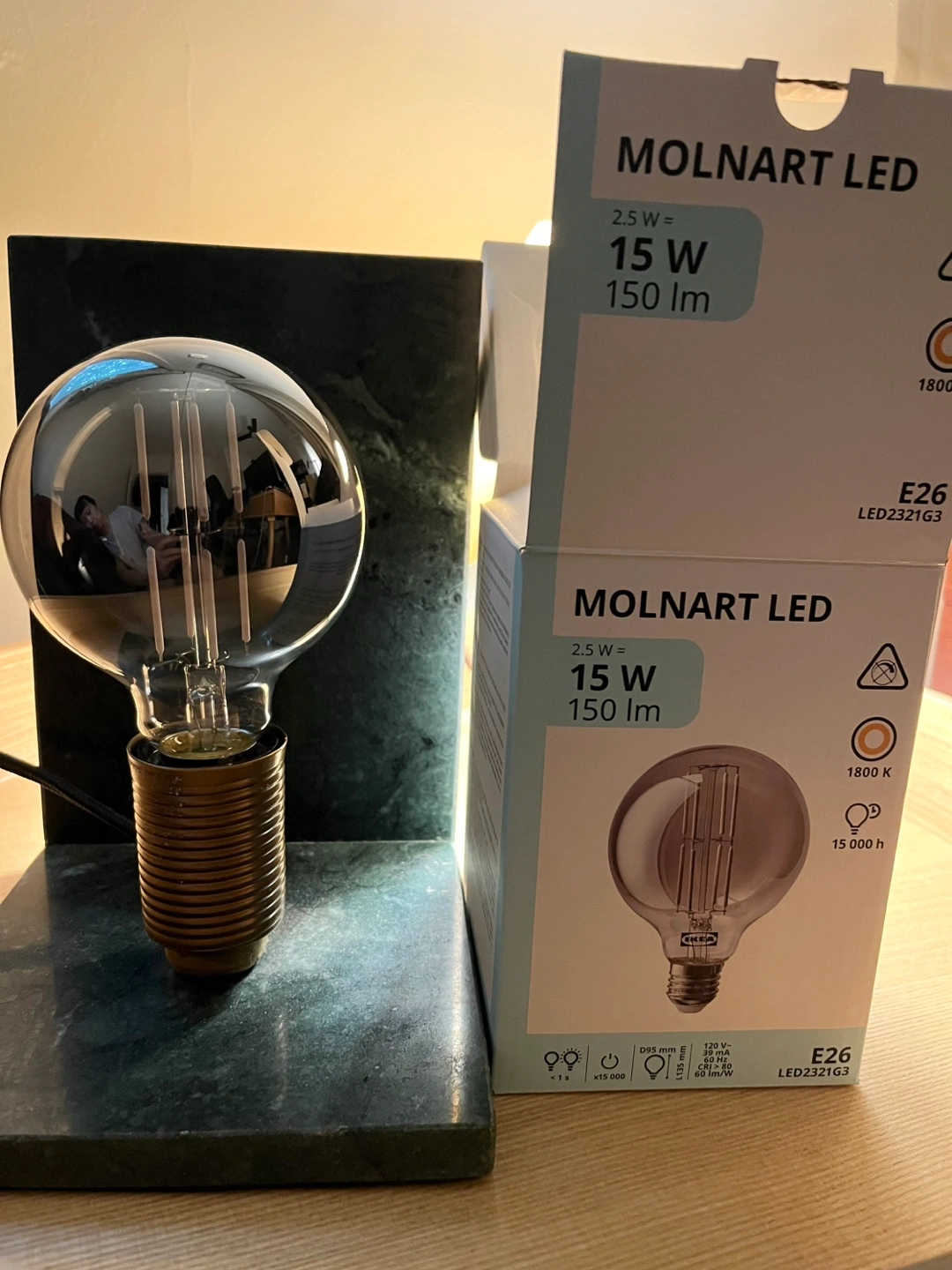 I’m including an Ikea Molnart LED globe light bulb that mimics a vintage Edison bulb.
