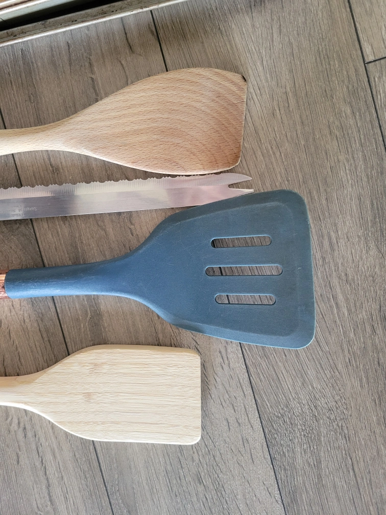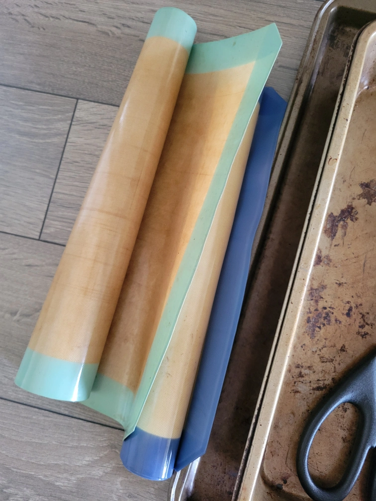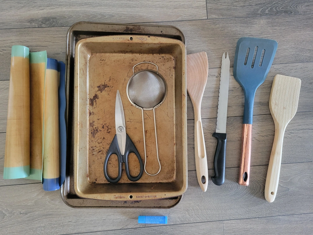 New celiac decluttering a gluten-y kitchen. All items are used but free if anyone wants them. Serated bread knife, plastic flipper, wooden flipper, bamboo stirrer, two silicone baking mats, kitchen scissors, small strainer, one flat baking sheet and one 2.5" inch deep pan. Pickup at Lansdowne and Dupont, must take all.