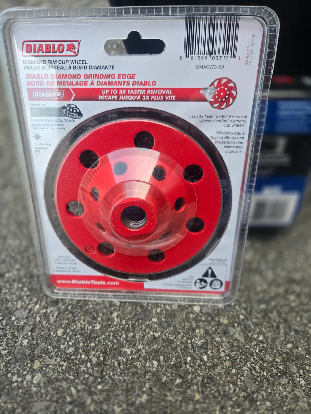 10Selling a brand new Diablo Diamond Rim Cup Wheel, perfect for angle grinders! It's 4 1/2 inches and designed for up to 3x faster material removal compared to standard diamond cup wheels. Get the job done quickly and efficiently!