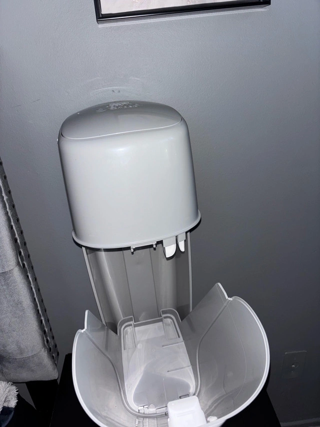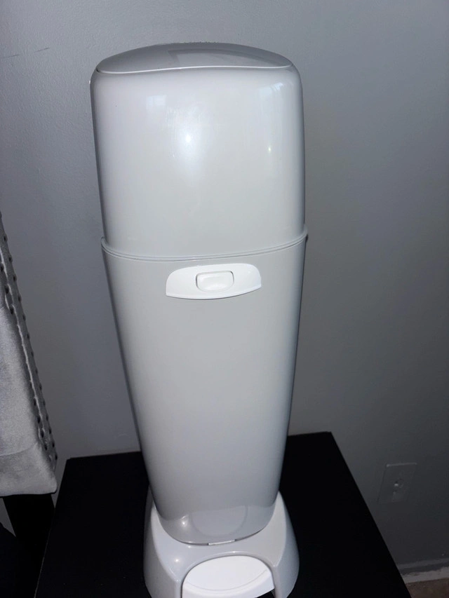 Diaper genie garbage can, easy to use and pefect to seal down the smell of baby diapers. Garbage bags not included. No deposits required. Payments will be done upon pickup