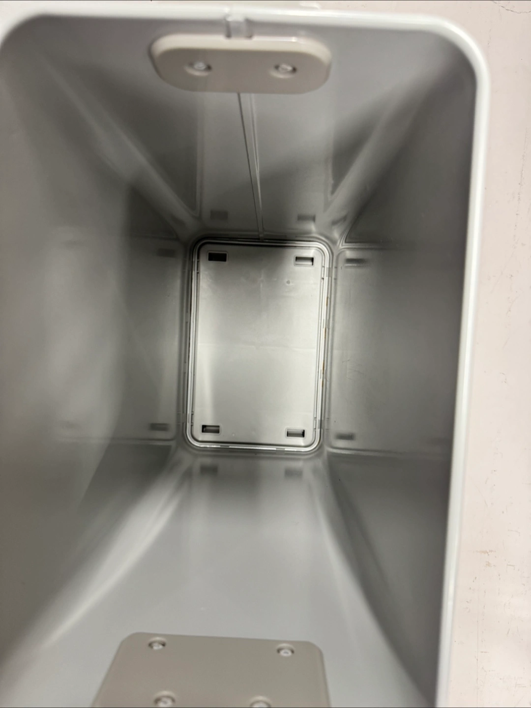 Automatic diaper pail. Grey and white colour scheme. Top-loading design. Foot pedal operation. Discreet odour control. Easy to clean. Great condition.