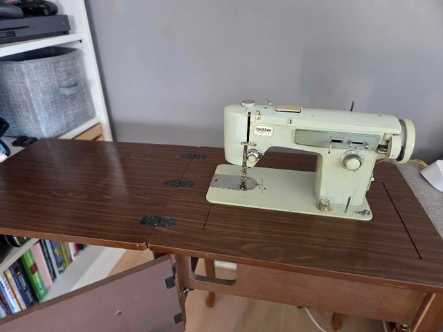 Used Brother Project 901 sewing machine with a table, perfect for all your sewing projects! The sewing machine folds down into the table. Due to its age, the machine is being sold as is. It needs a foot pedal but is otherwise intact. Brand: Brother, Model: Project 901. I've enjoyed having this, but it's time to pass it on to someone else. Let me know if you're interested!