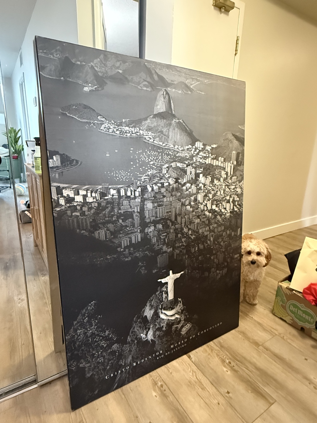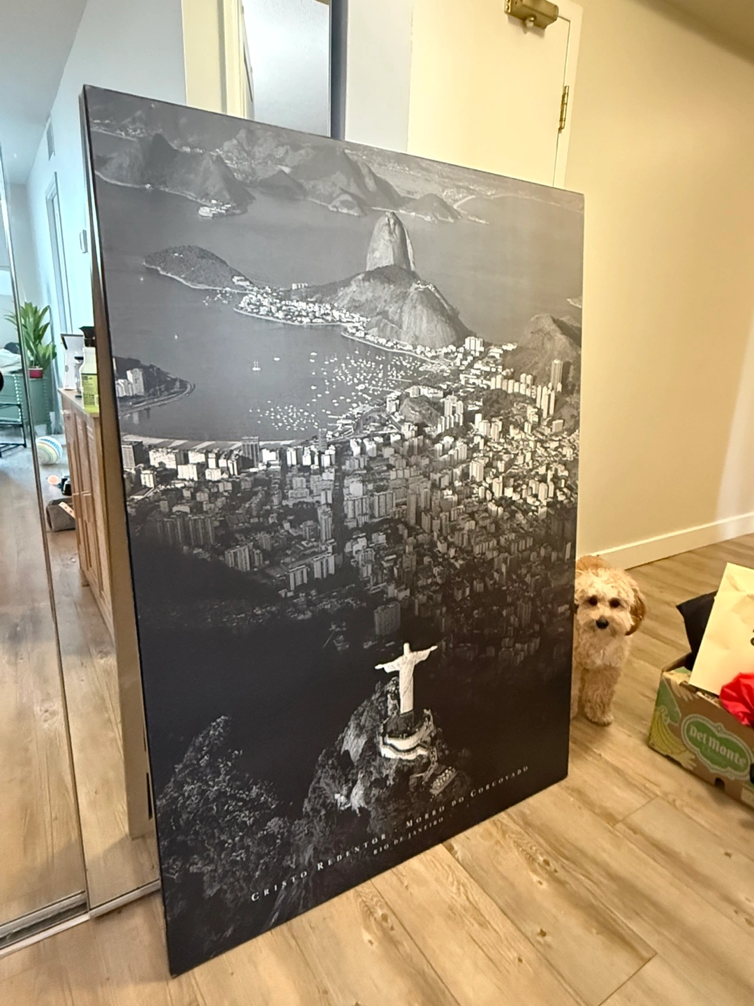 Large black and white print of Rio de Janeiro with the Christ the Redeemer statue. This print would make a great addition to any room!