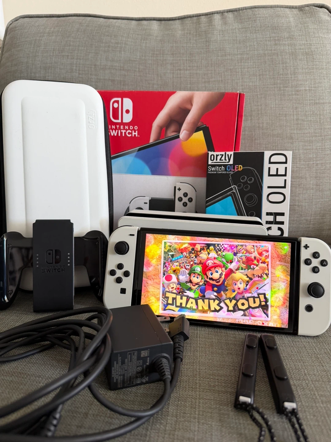 I am selling my Nintendo Switch OLED model in White. It has been adult-owned and is in great condition. The console comes from a smoke-free and pet-free home.